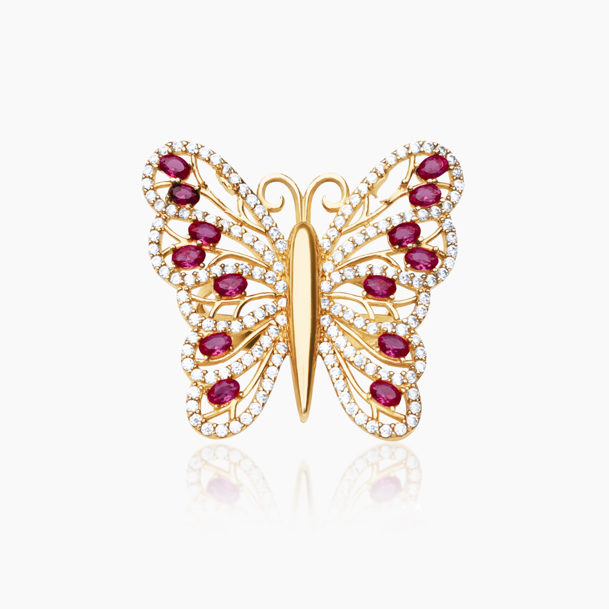 14K YELLOW GOLD ICY MARVELOUS BUTTERFLY RING -FUSCHIA
