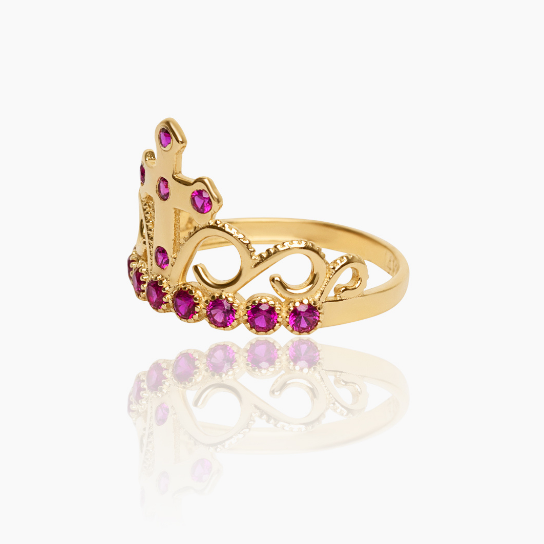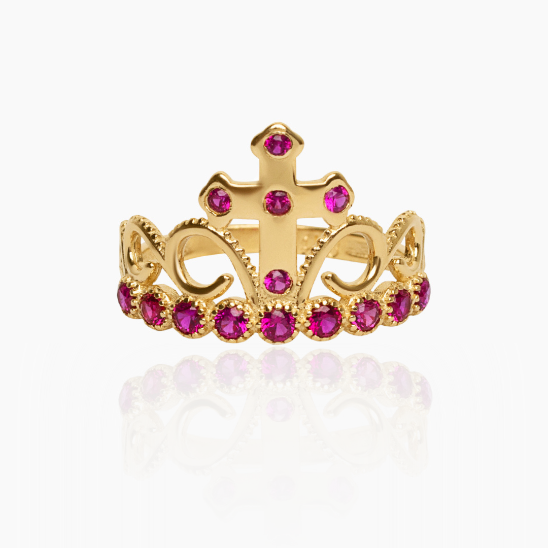 14K YELLOW GOLD MARISOL CROSS CROWN RING