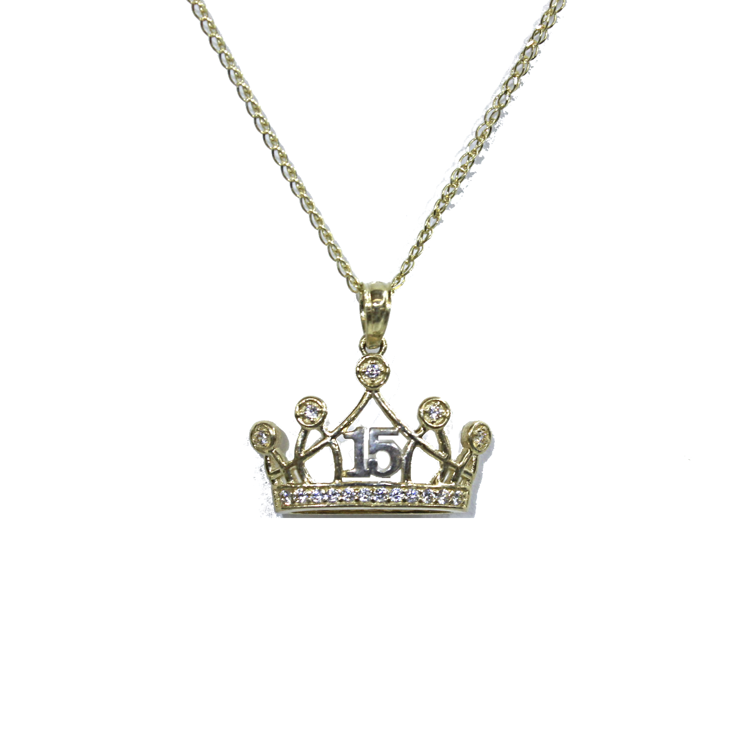 14K YELLOW GOLD CROWN CELEBRATE 15 NECKLACE