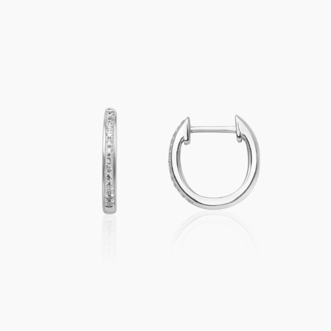 14K WHITE GOLD ESSENTIAL DIAMOND HUGGIE HOOPS -XSMALL