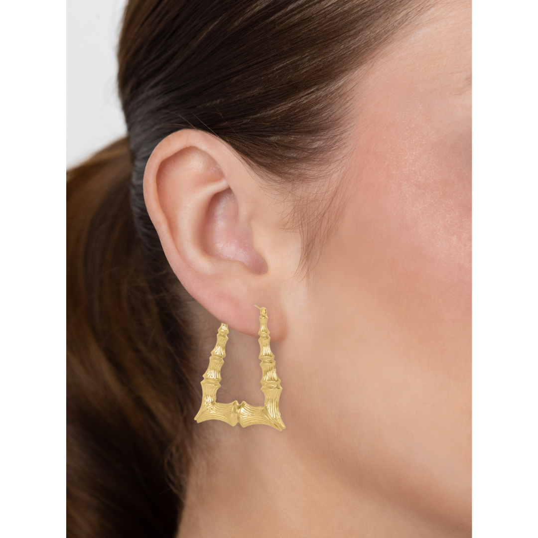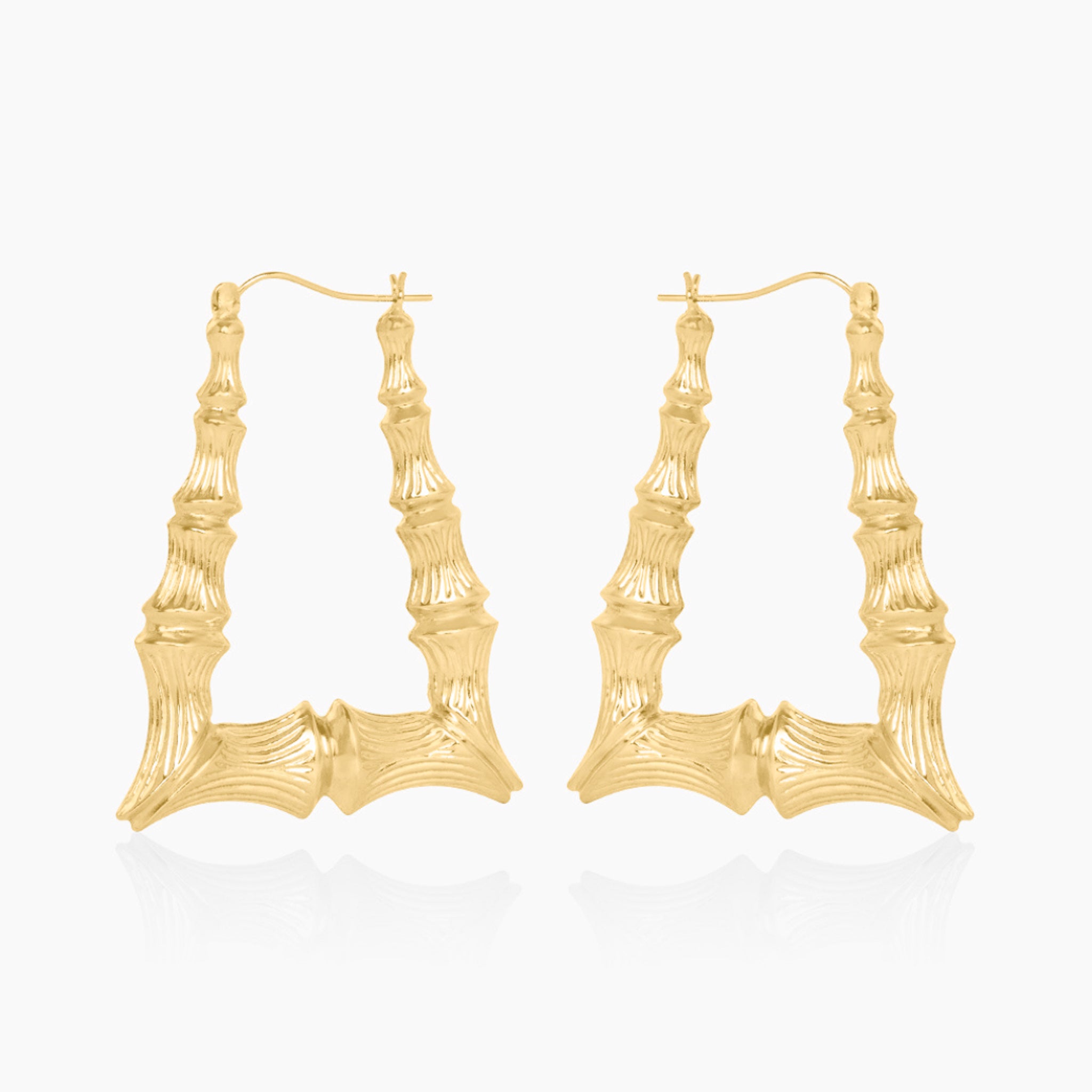 10K YELLOW GOLD BAMBOO DOOR KNOCKER HOOPS -LARGE