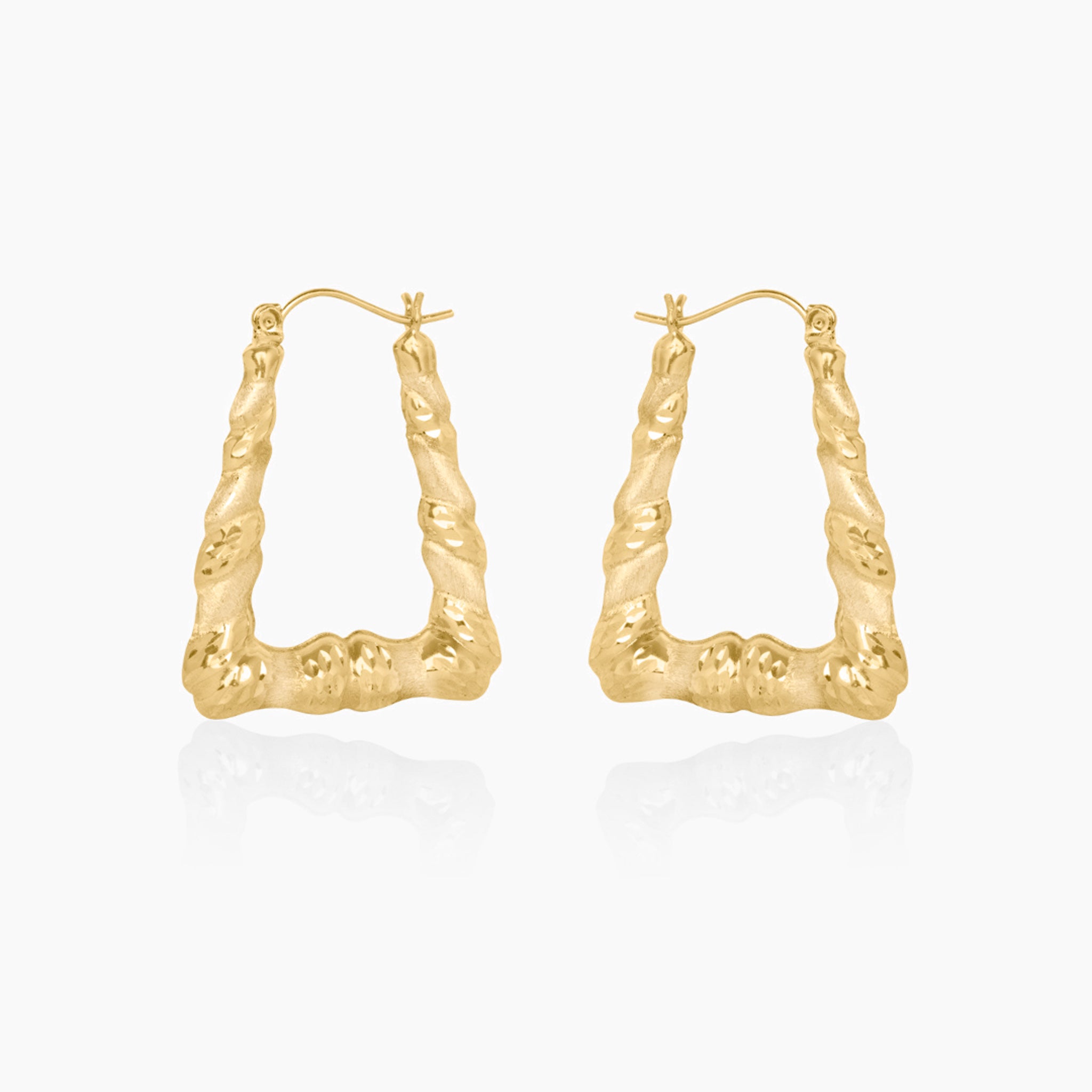10K YELLOW GOLD TWIST DOOR KNOCKER HOOPS
