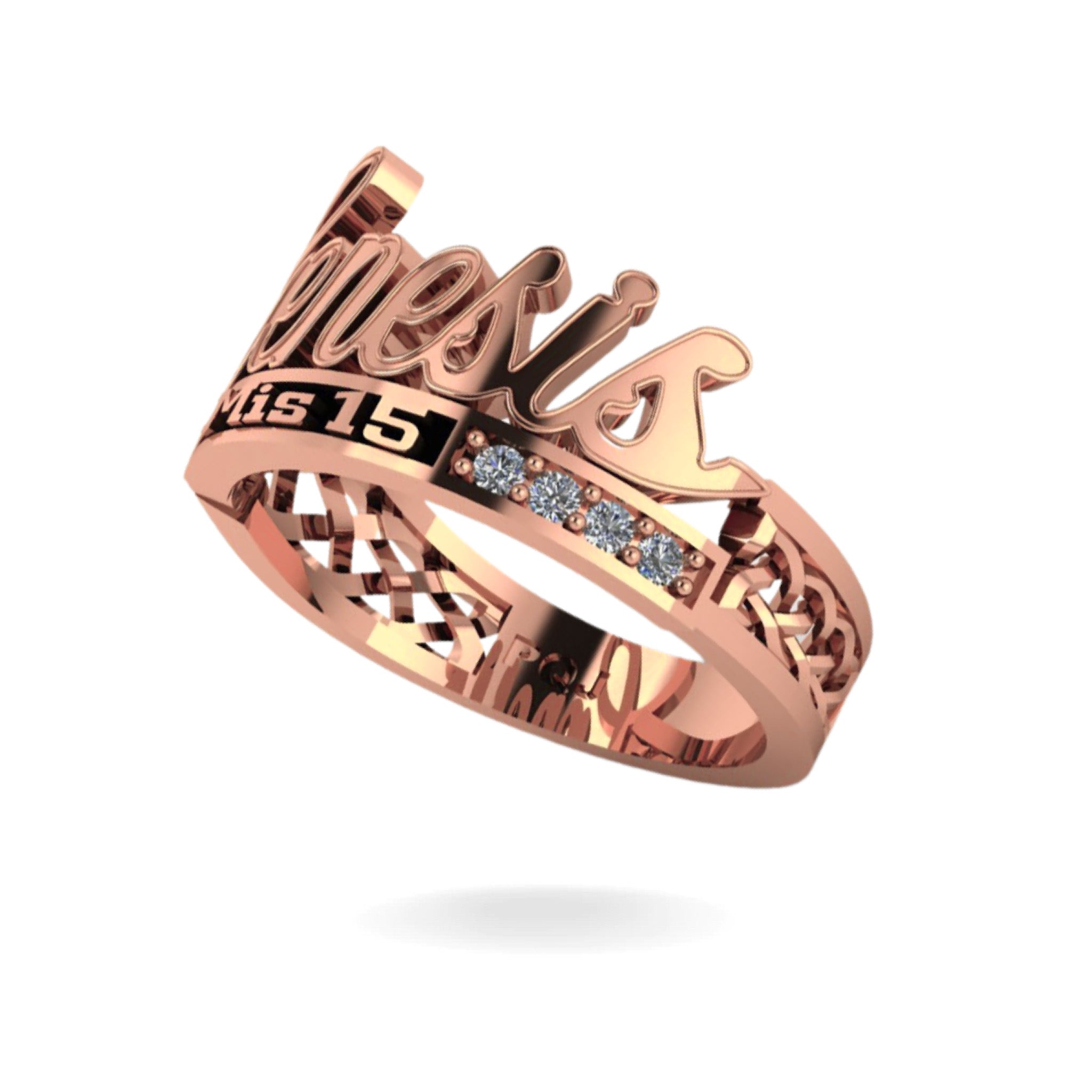 14K ROSE GOLD CUSTOM MÍS 15 NAME RING