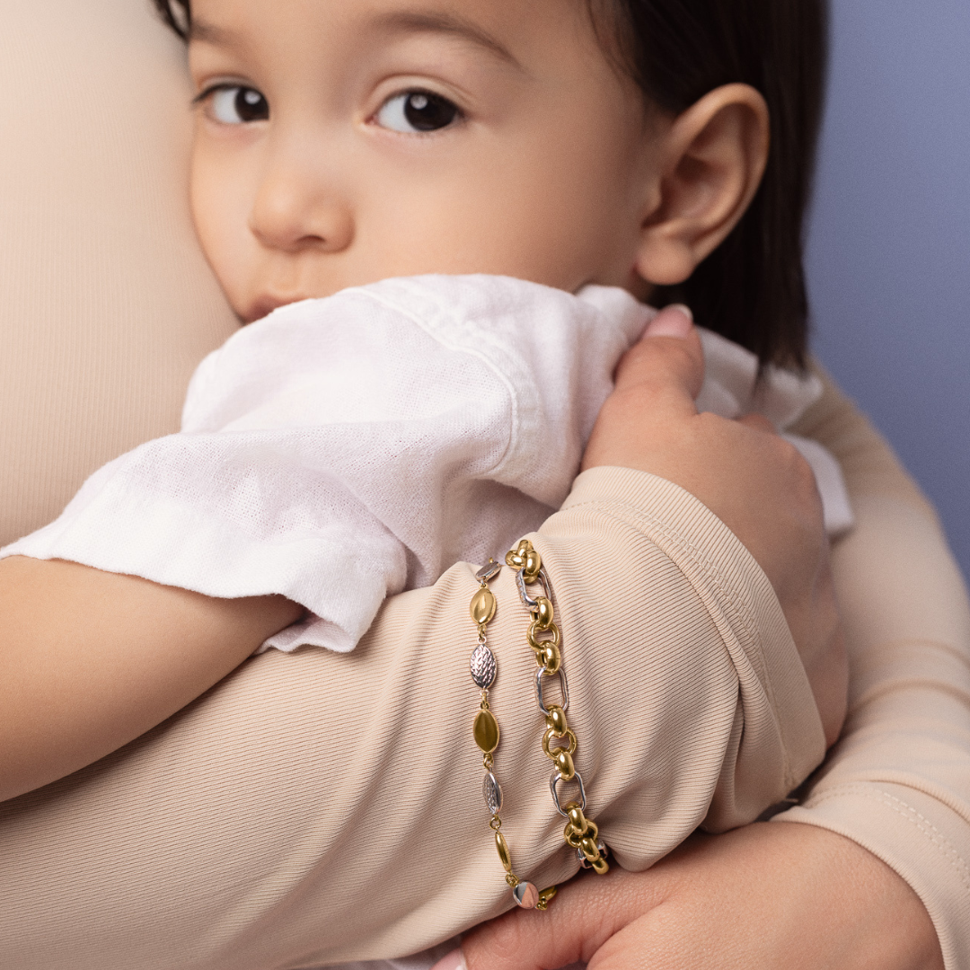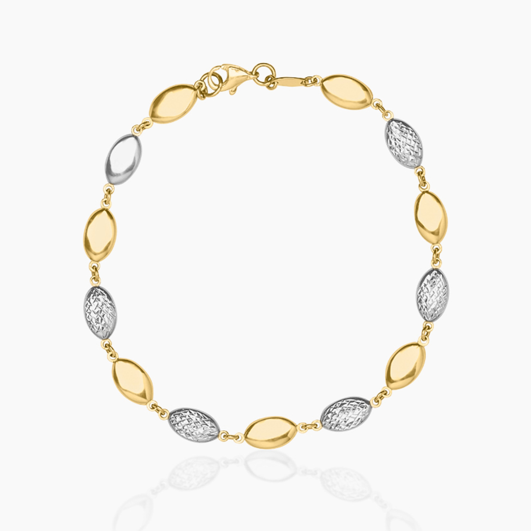 14K TWO TONED GOLD OVAL BEADS BRACELET