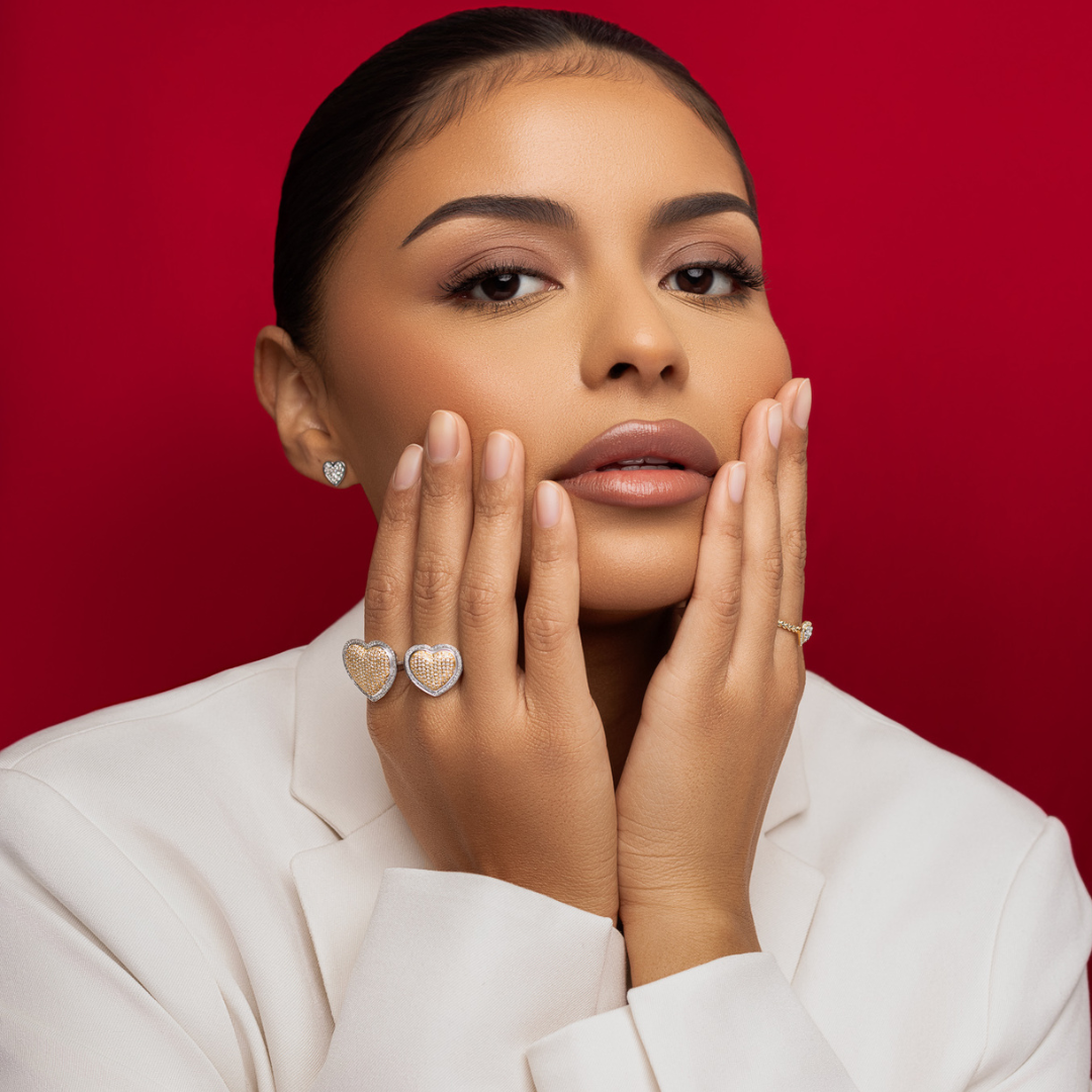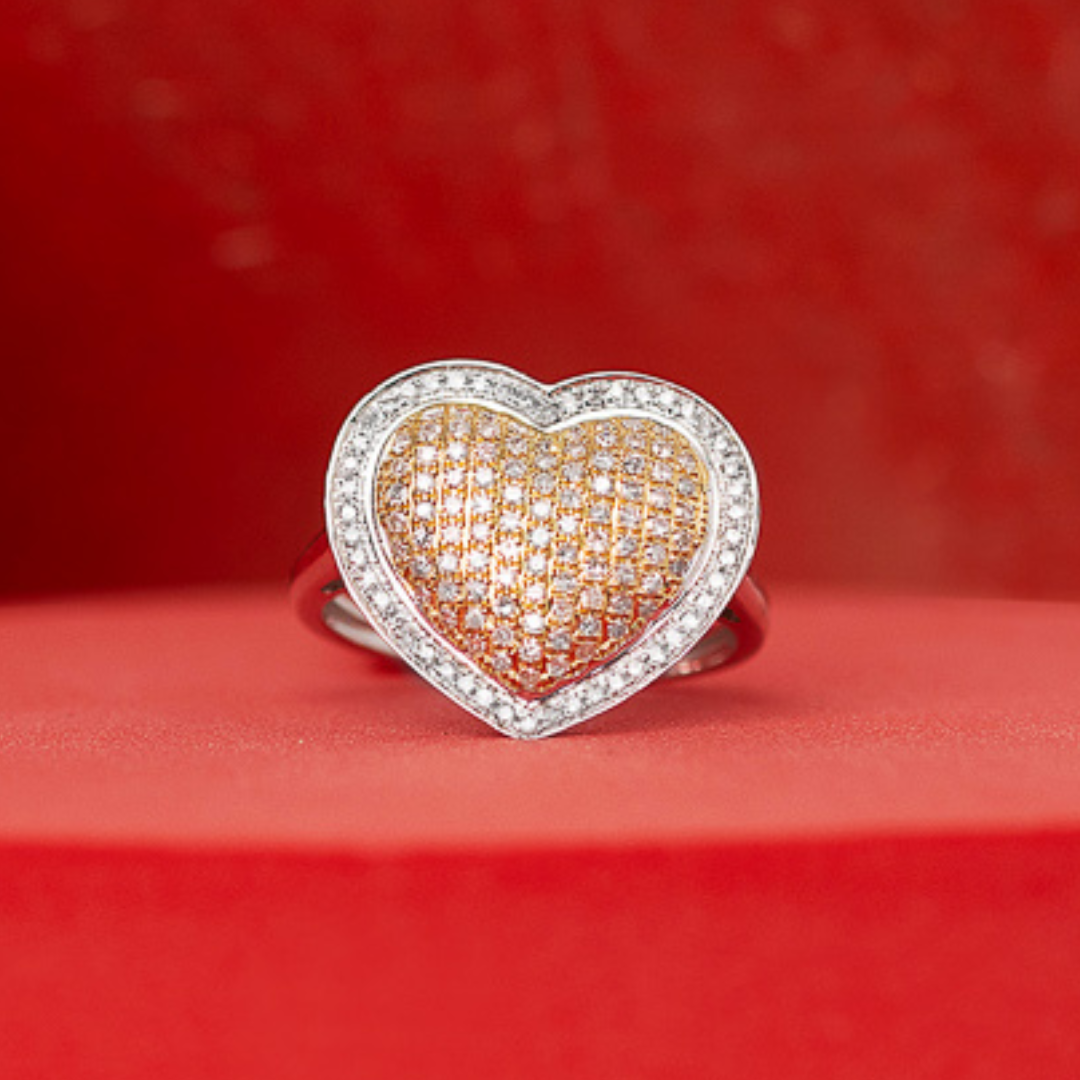 14K TWO TONED GOLD PILLOW HEART DIAMOND RING