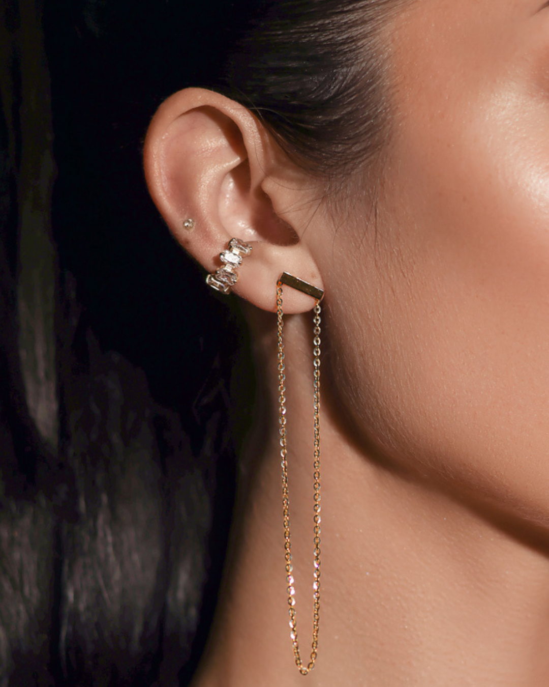 14K WHITE GOLD ICE EAR CUFF - EMERALD CUT