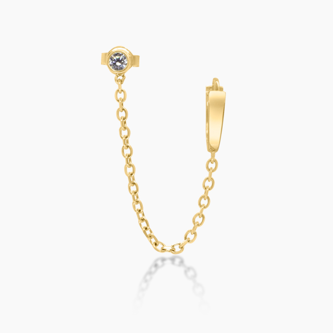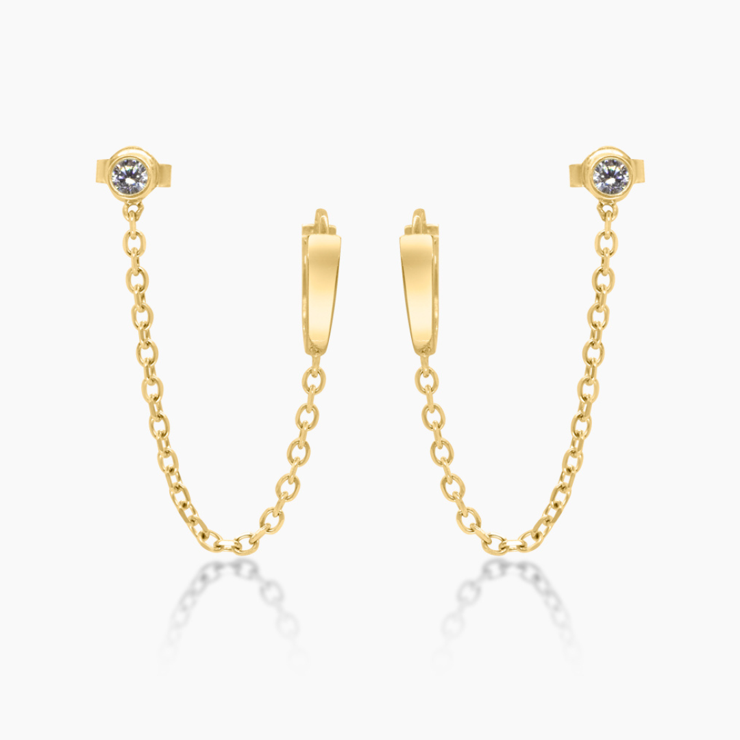 14K YELLOW GOLD STUD CHAIN AND HUGGIE EARRING