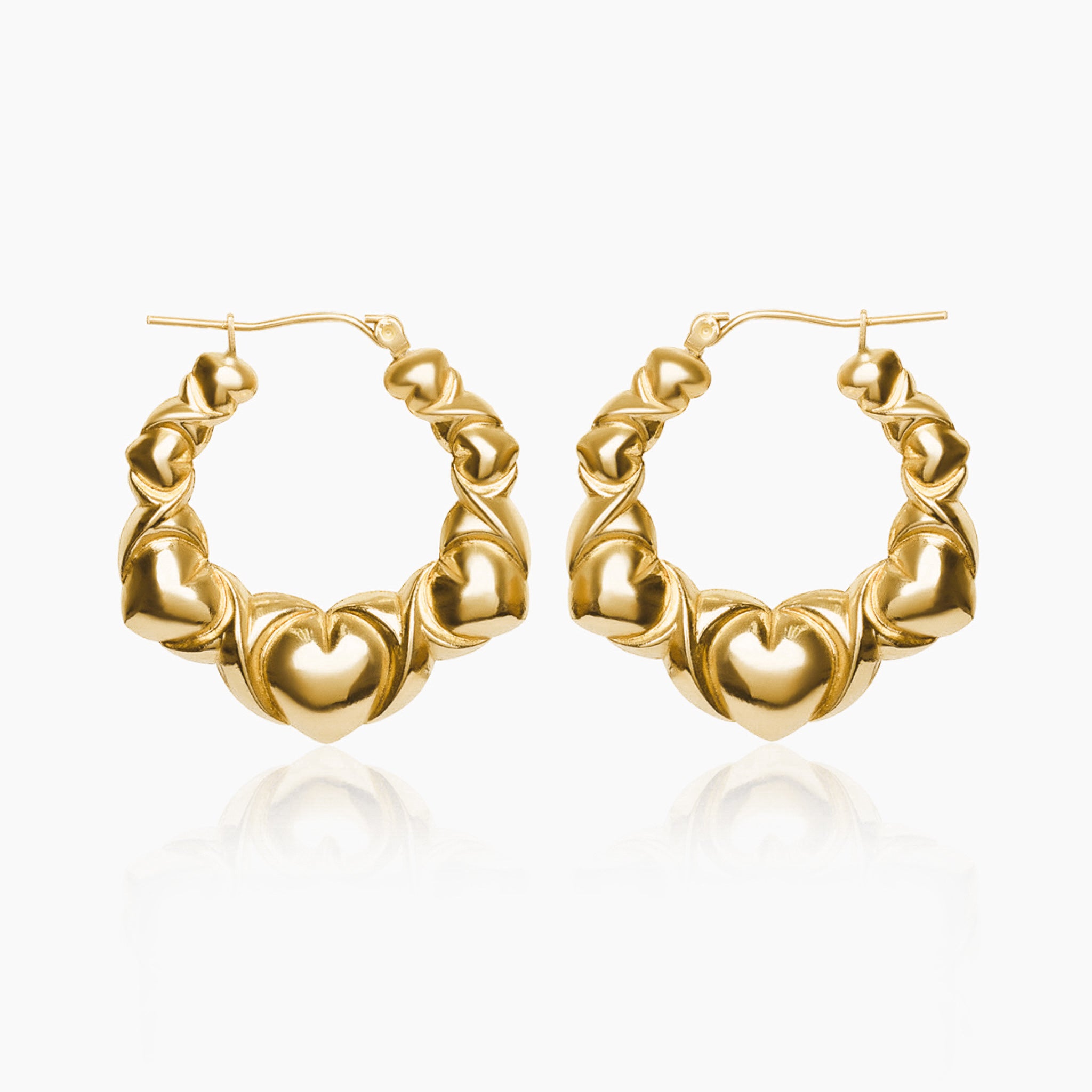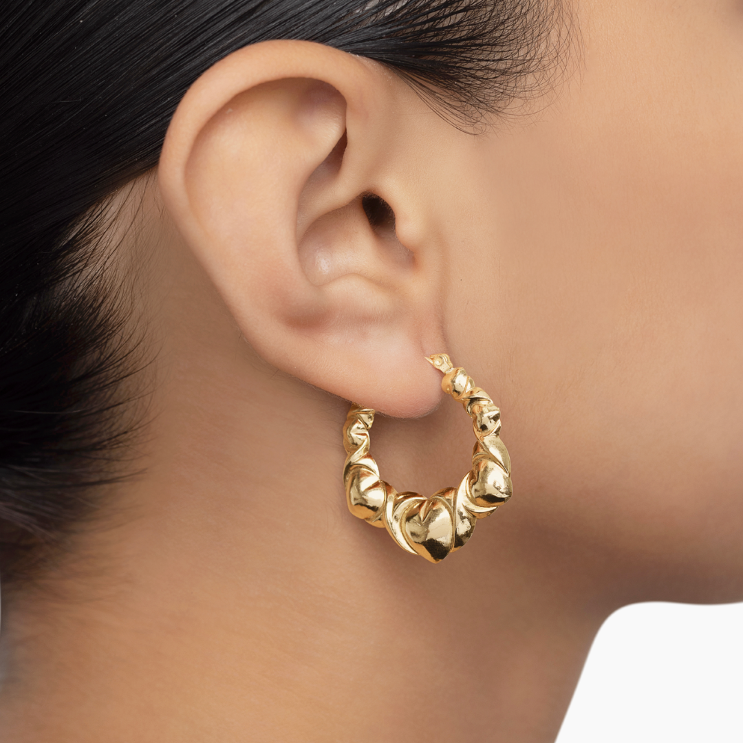 14K YELLOW GOLD CHERIE HEART HOOPS