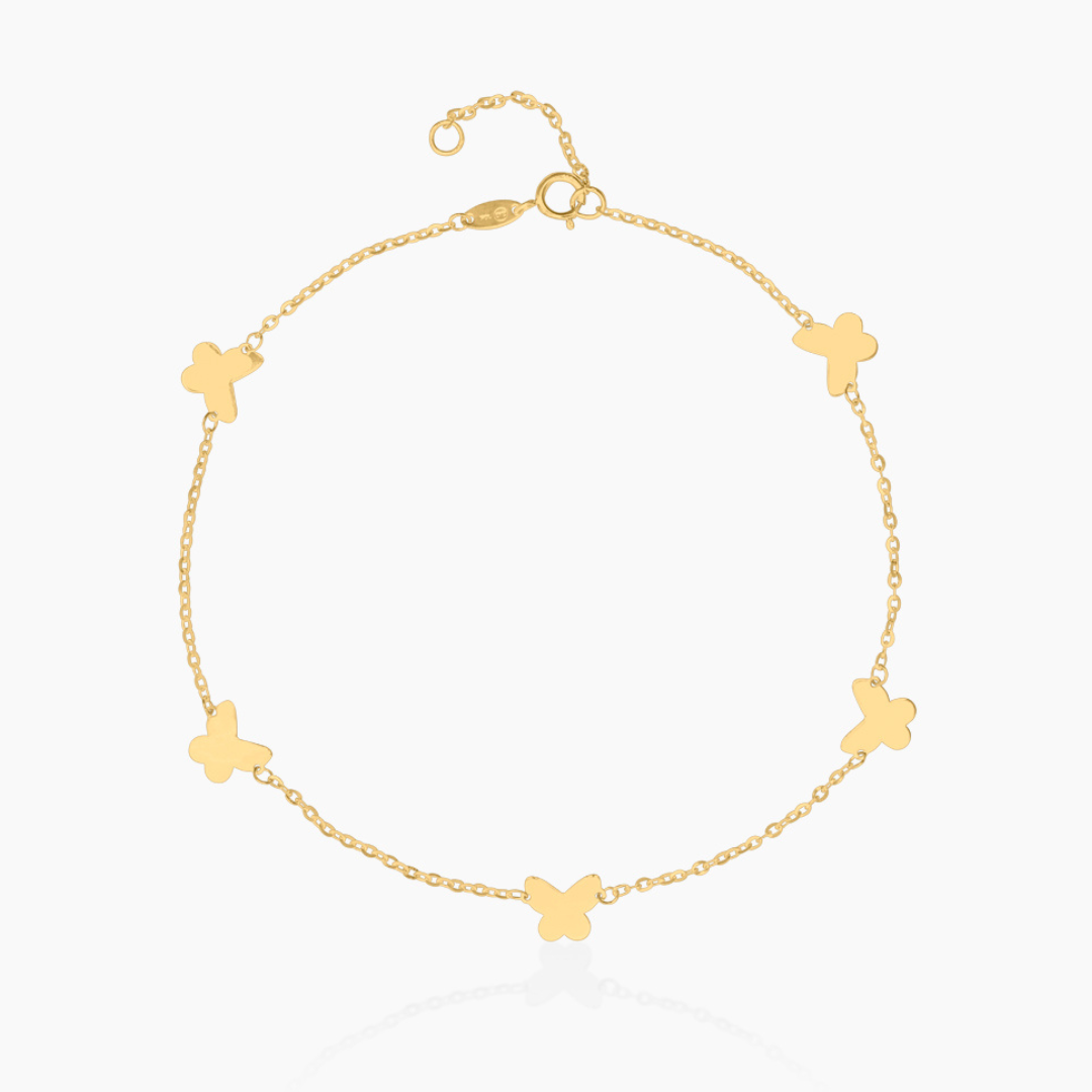 10K YELLOW GOLD BUTTERFLY CHARMS ANKLET