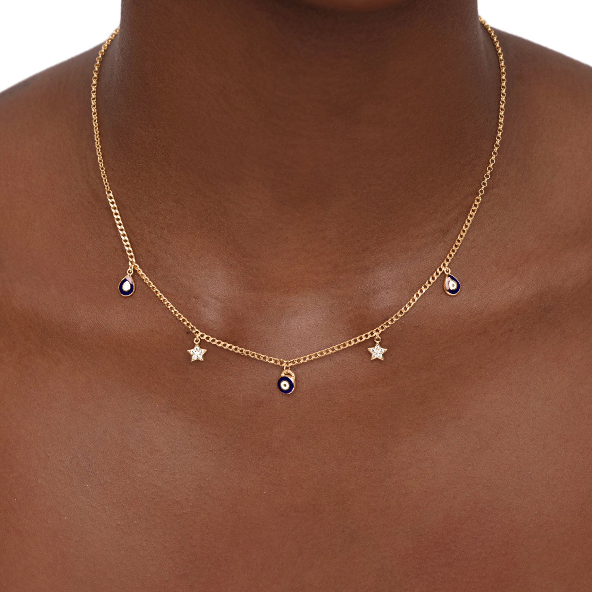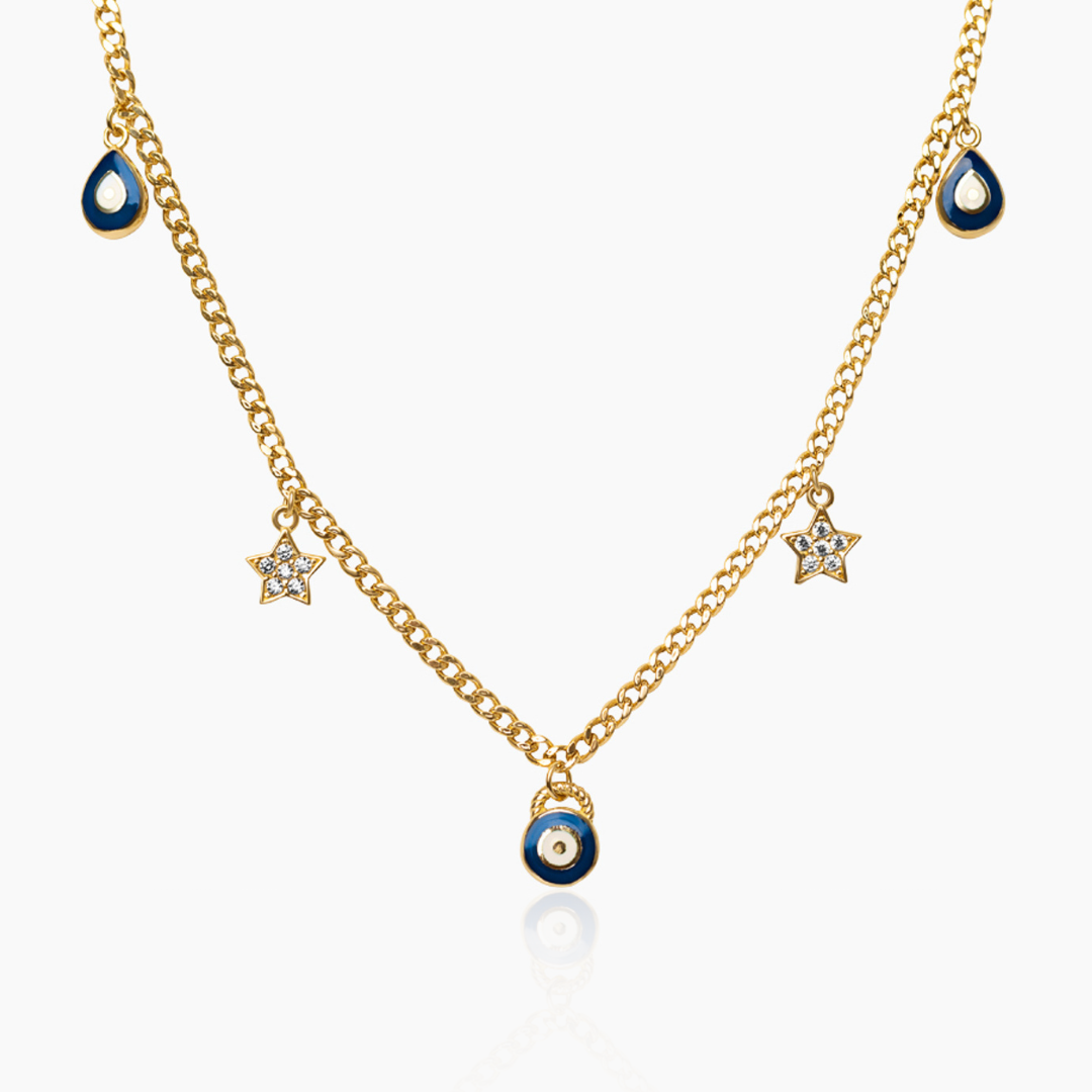 14K YELLOW GOLD EYE ECLIPSE CHARM NECKLACE