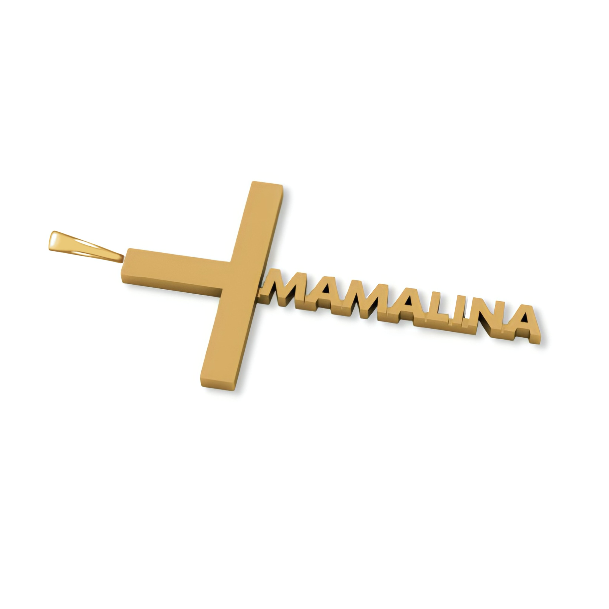 CUSTOM GOLD SERIF NAME CROSS PENDANT