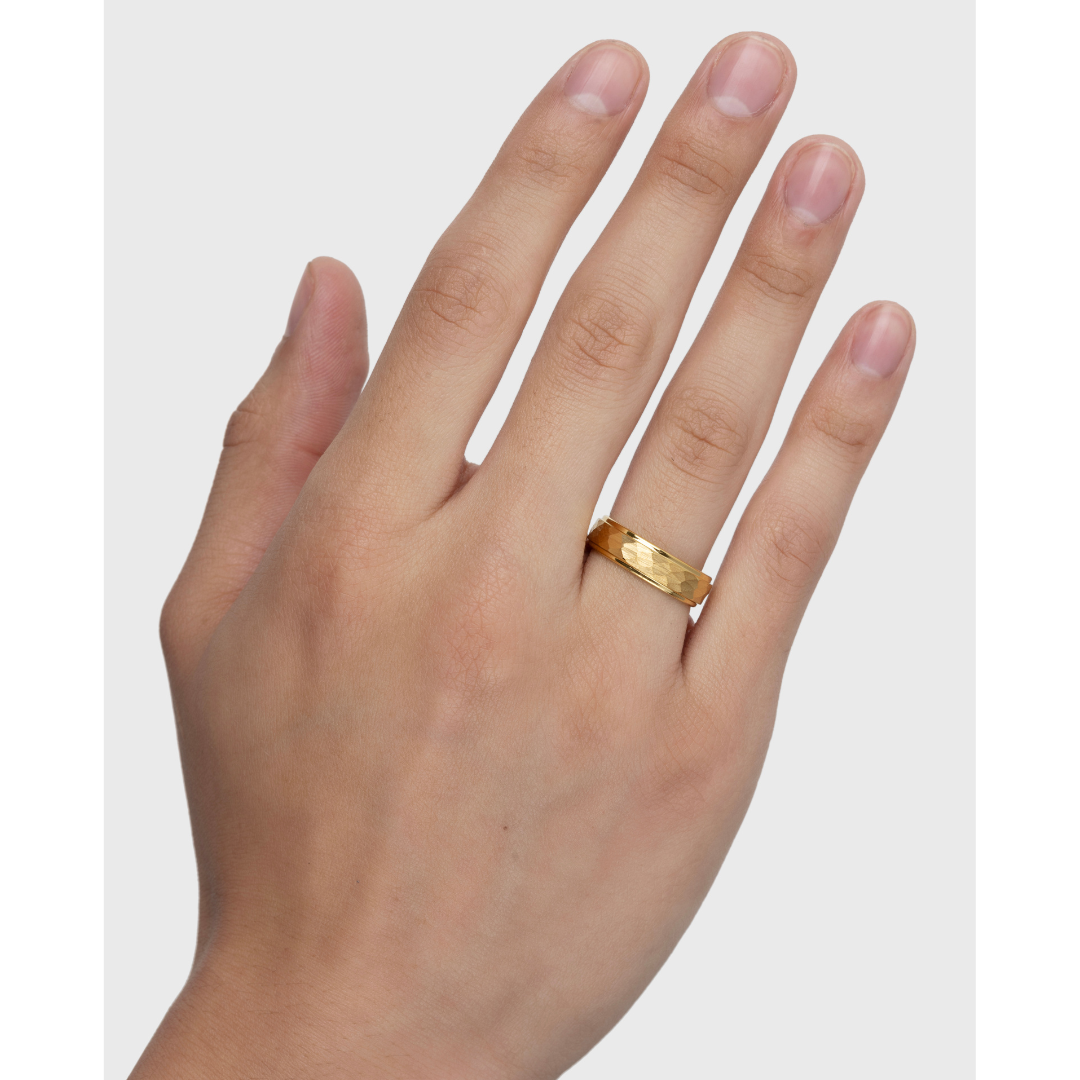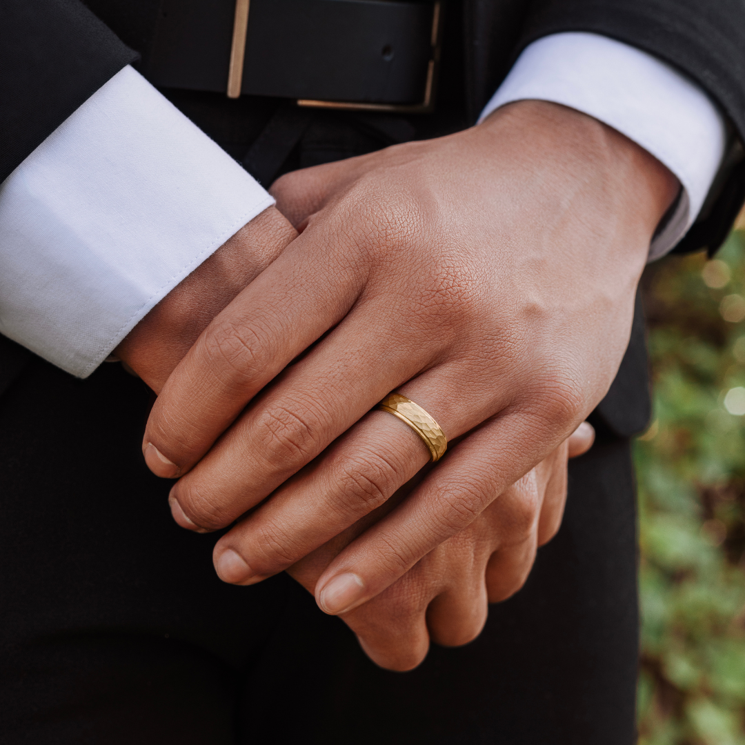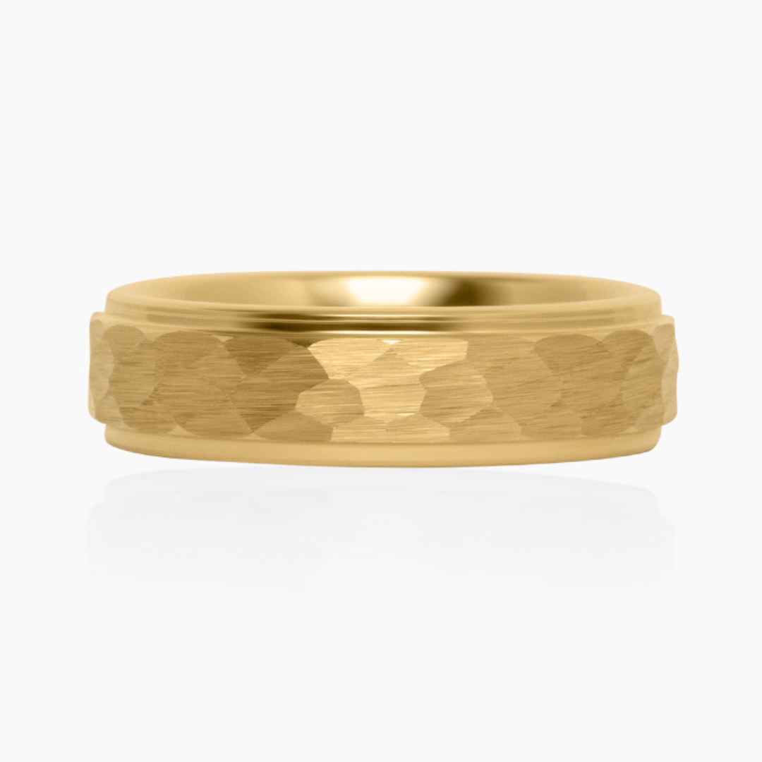 TUNGSTEN GOLD HAMMERED STEP EDGE RING -6MM