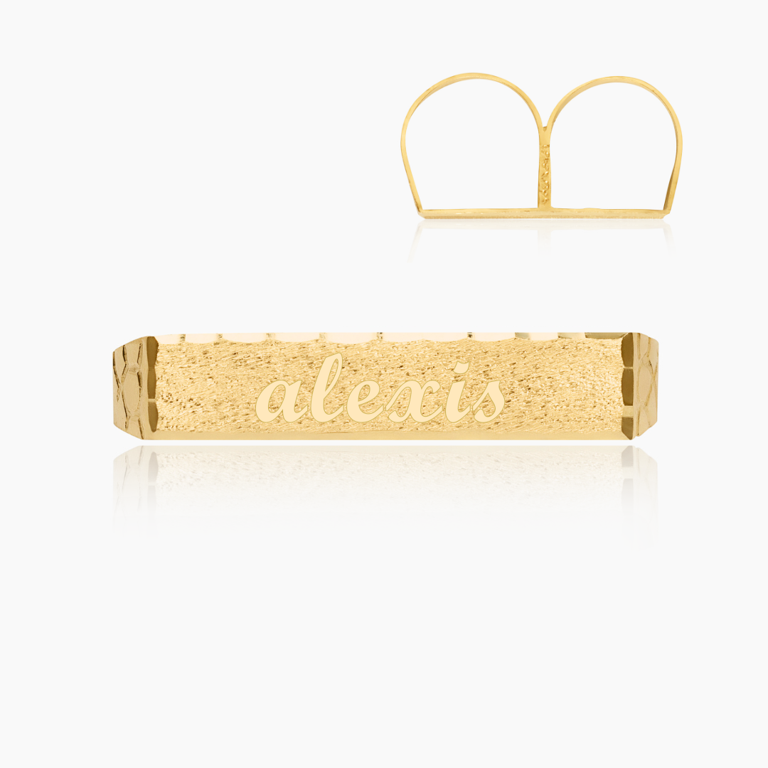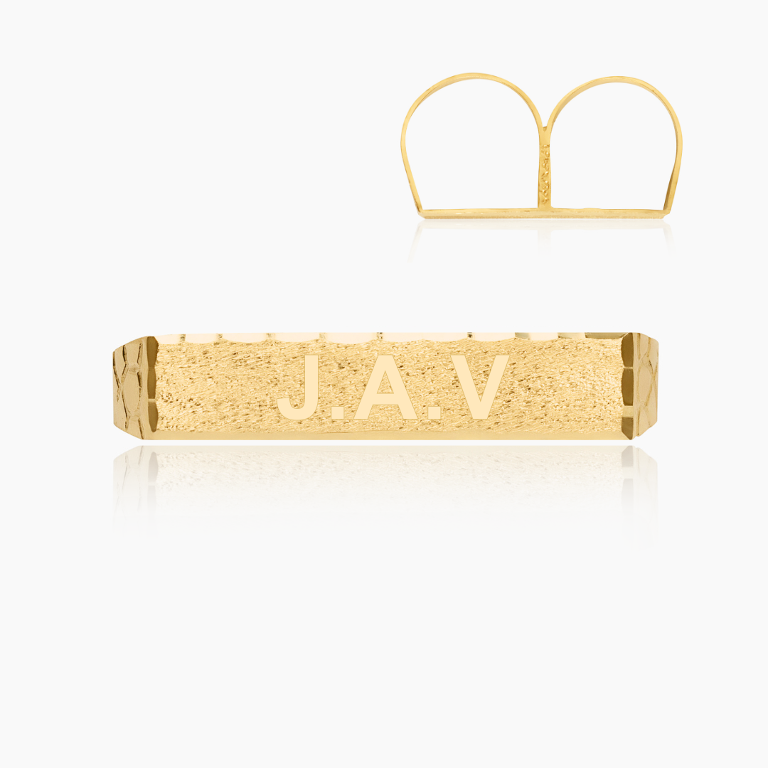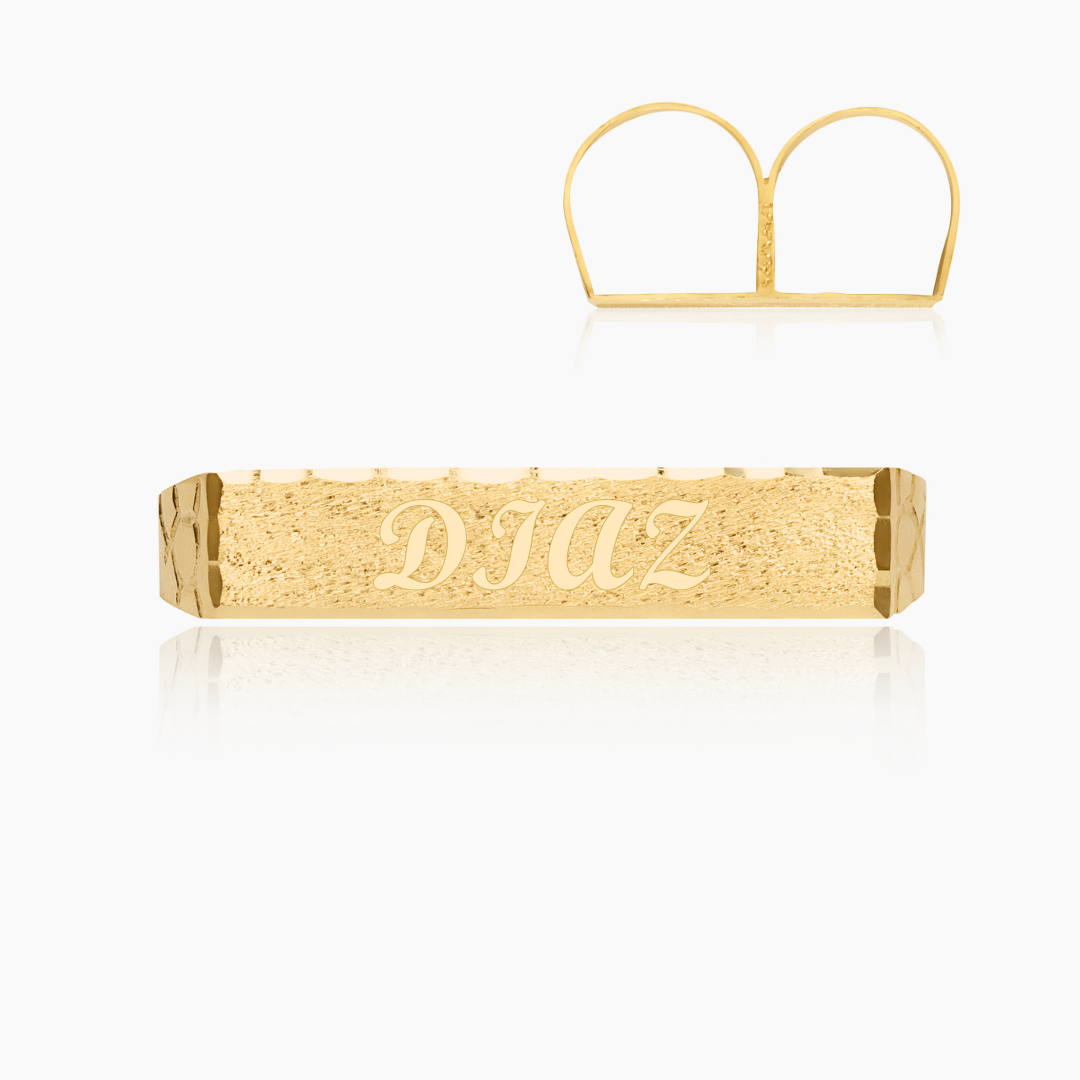 10K YELLOW GOLD DIAMOND-CUT BAR DOUBLE FINGER RING -8MM