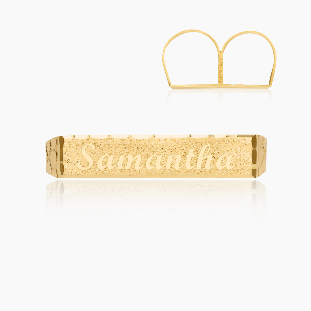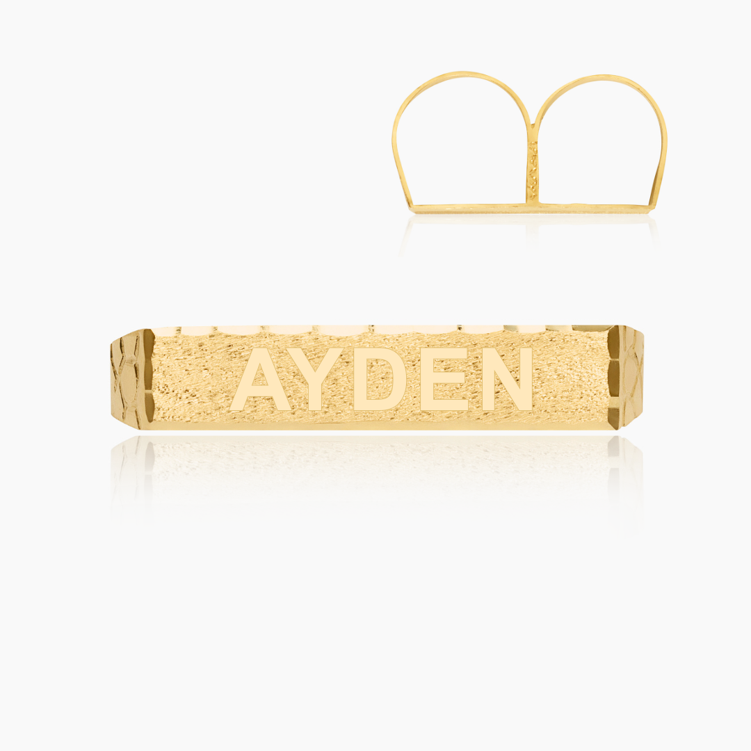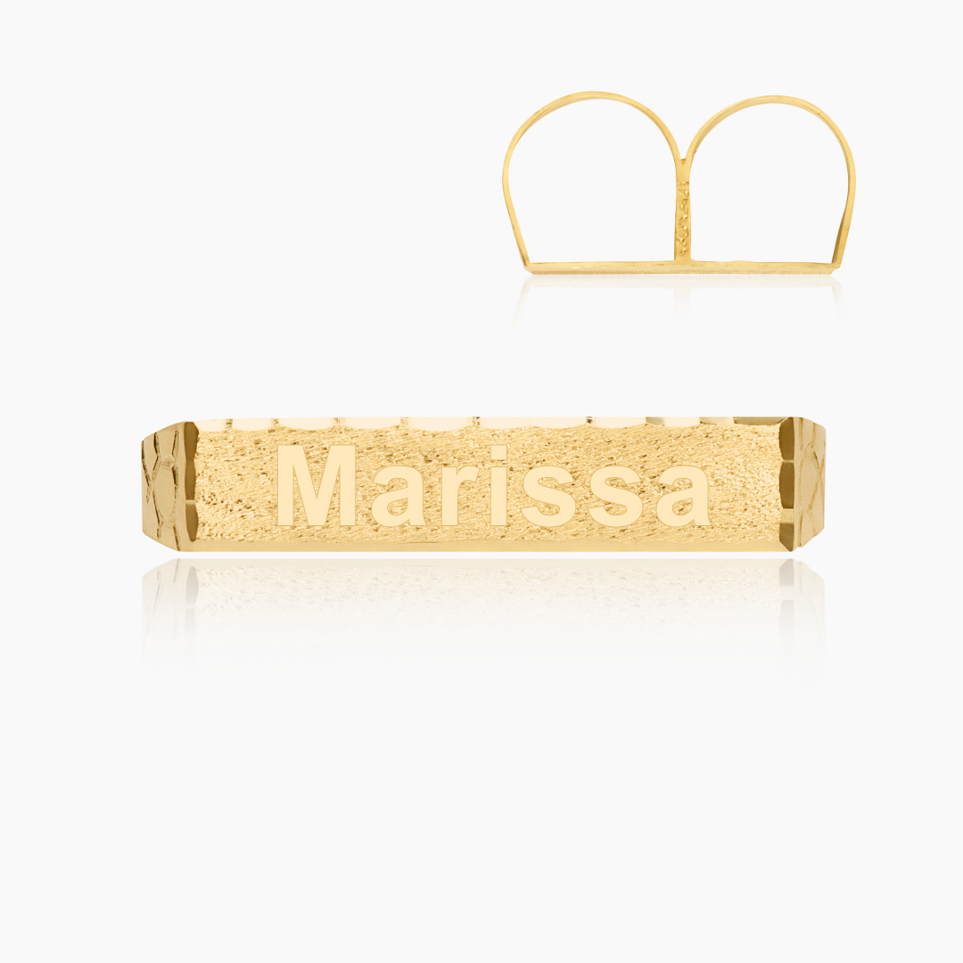 10K YELLOW GOLD DIAMOND-CUT BAR DOUBLE FINGER RING -8MM
