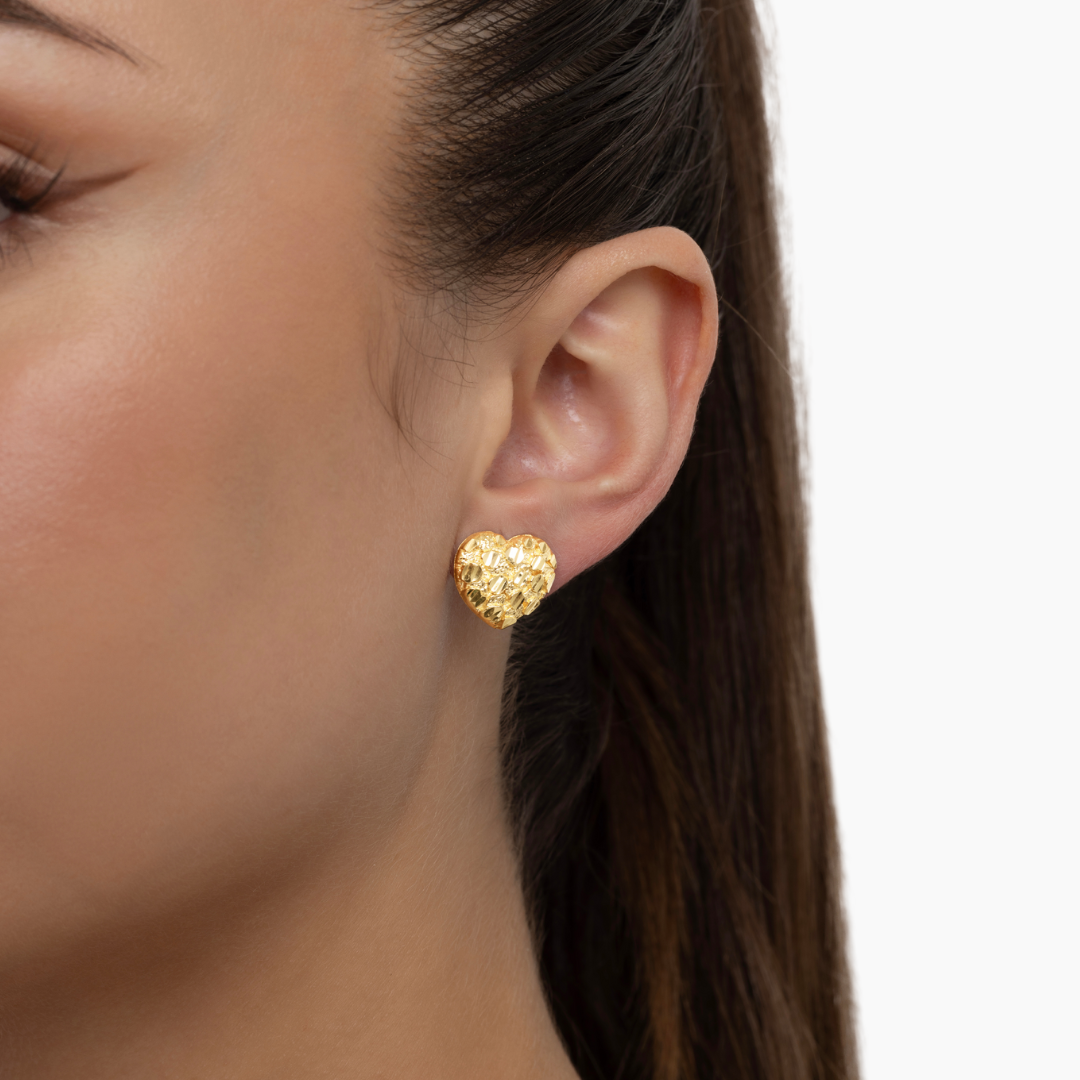 10K YELLOW GOLD HEART NUGGET EARRINGS -13.5MM