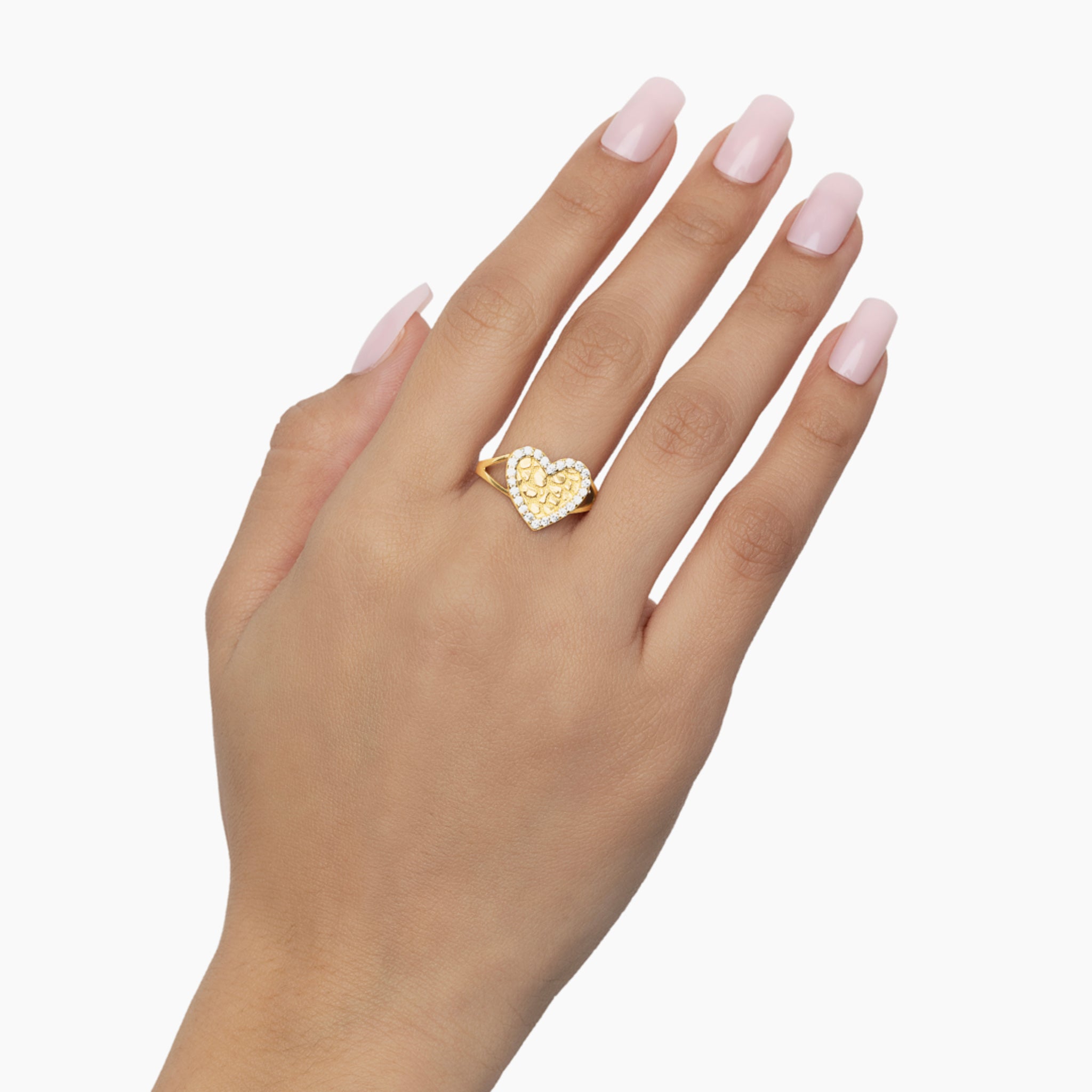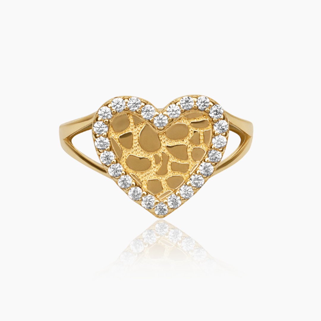 10K YELLOW GOLD HALO HEART NUGGET SPLIT SHANK RING