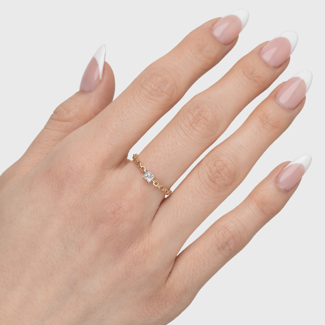 14K YELLOW GOLD CHAIN LINK SQUARE BEZEL CZ RING