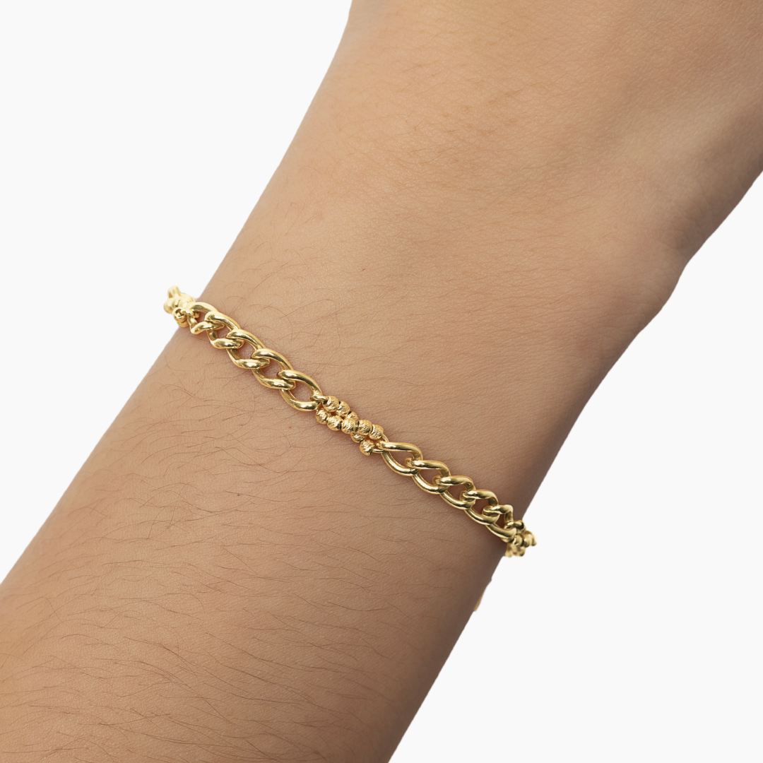 10K YELLOW GOLD CUBAN + MOONCUT BEADS BRACELET