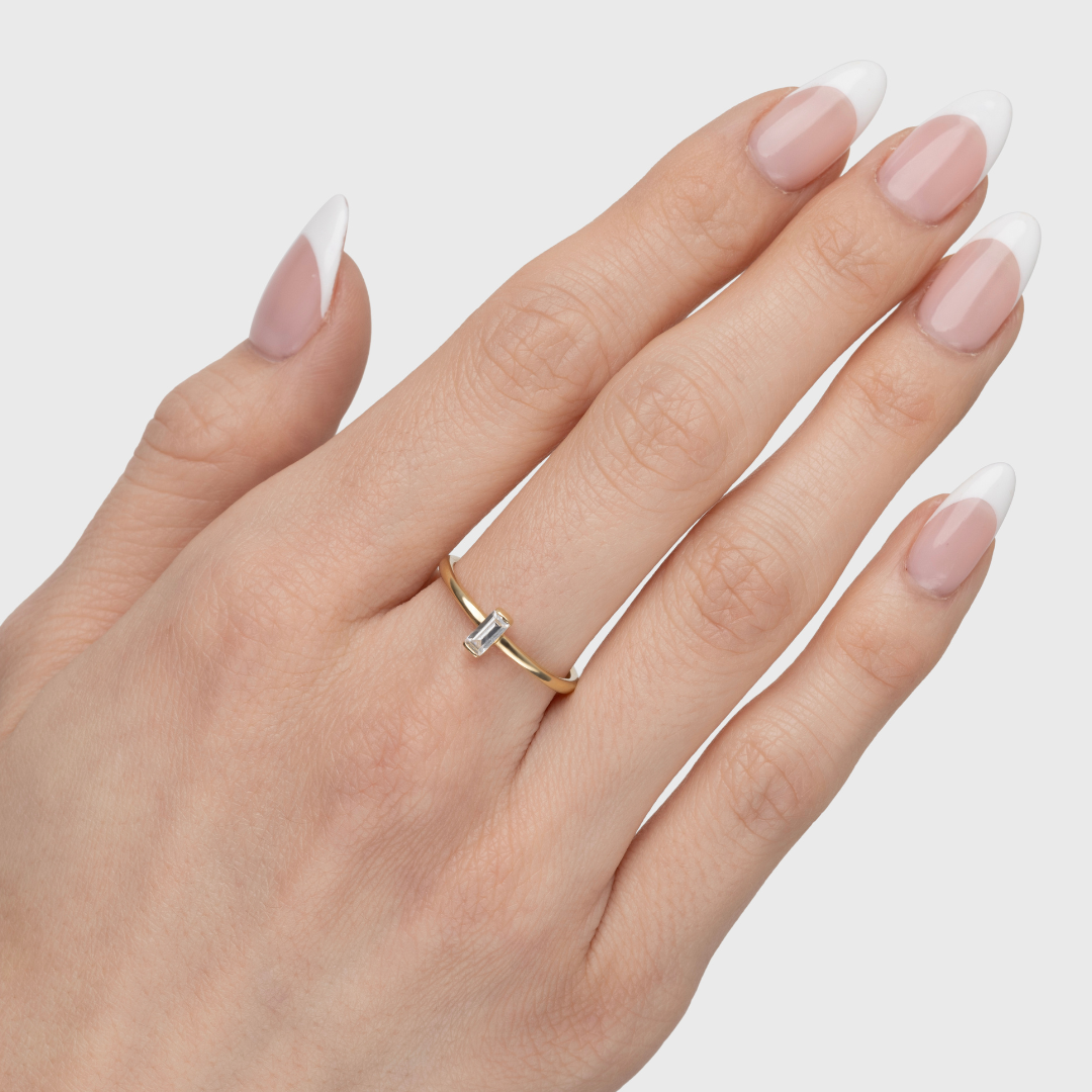 14K YELLOW GOLD EMERALD CUT SOLITAIRE STACKABLE RING