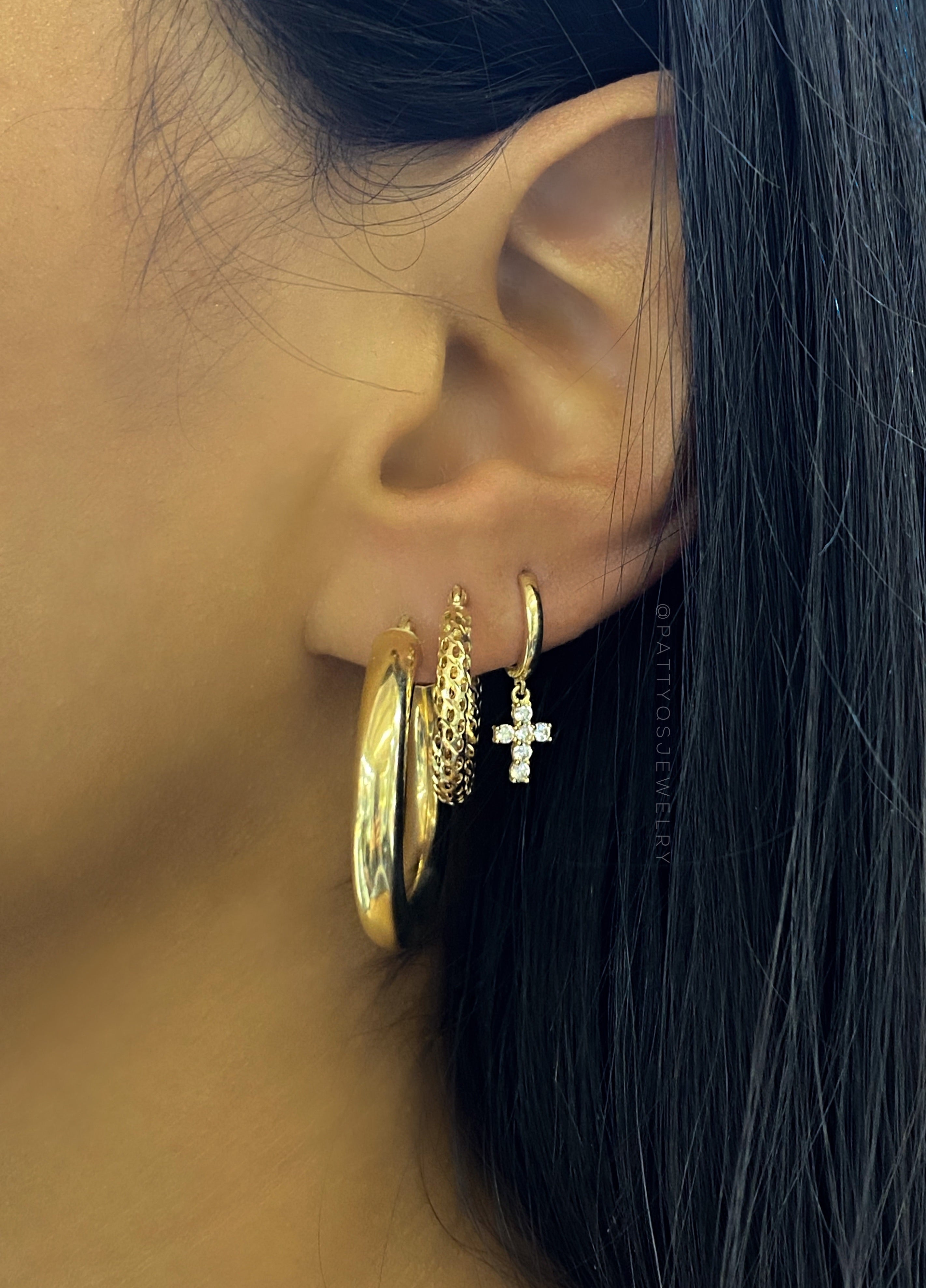 14K YELLOW GOLD MINI CZ CROSS HOOPS