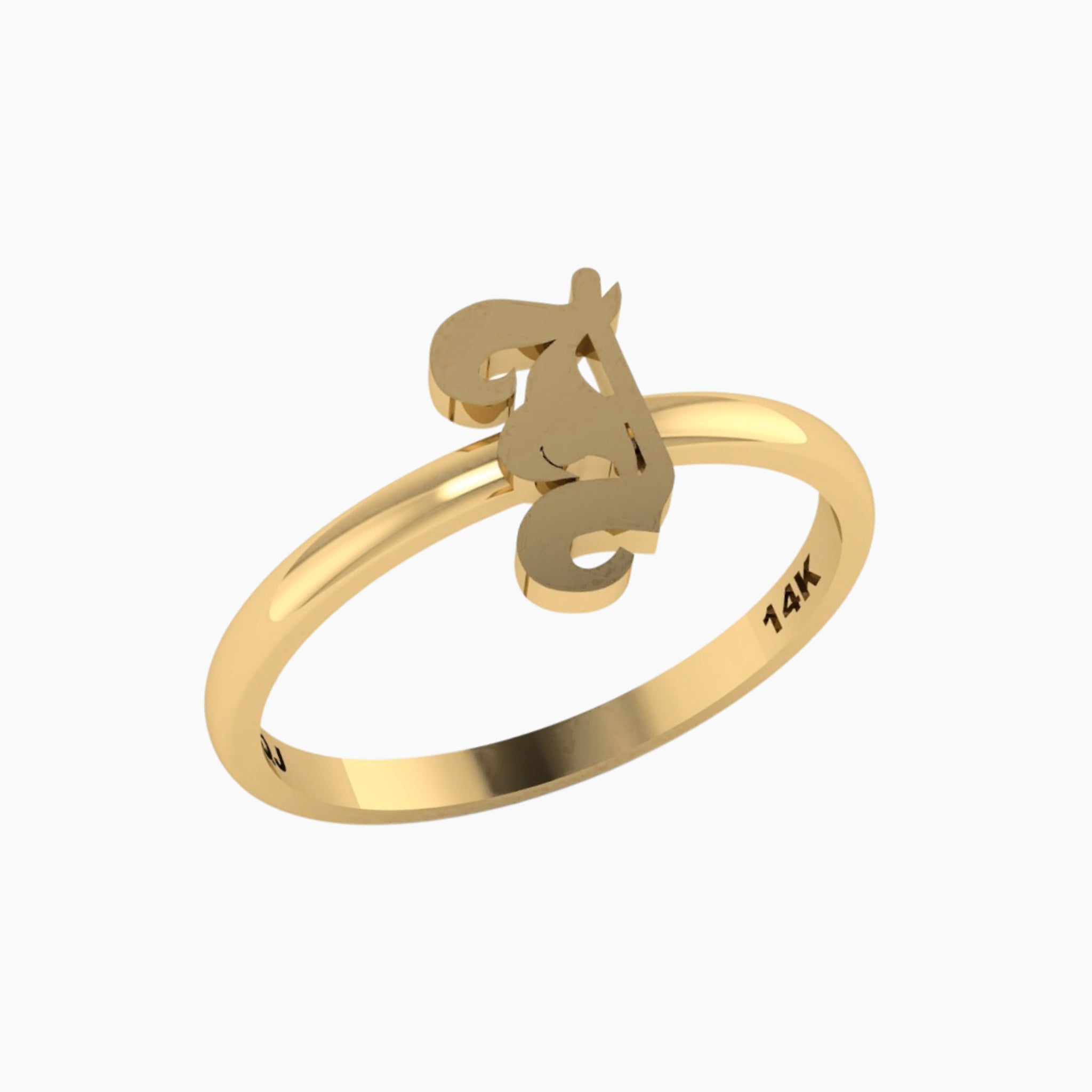 14K YELLOW GOLD OLD ENGLISH INITIAL RING