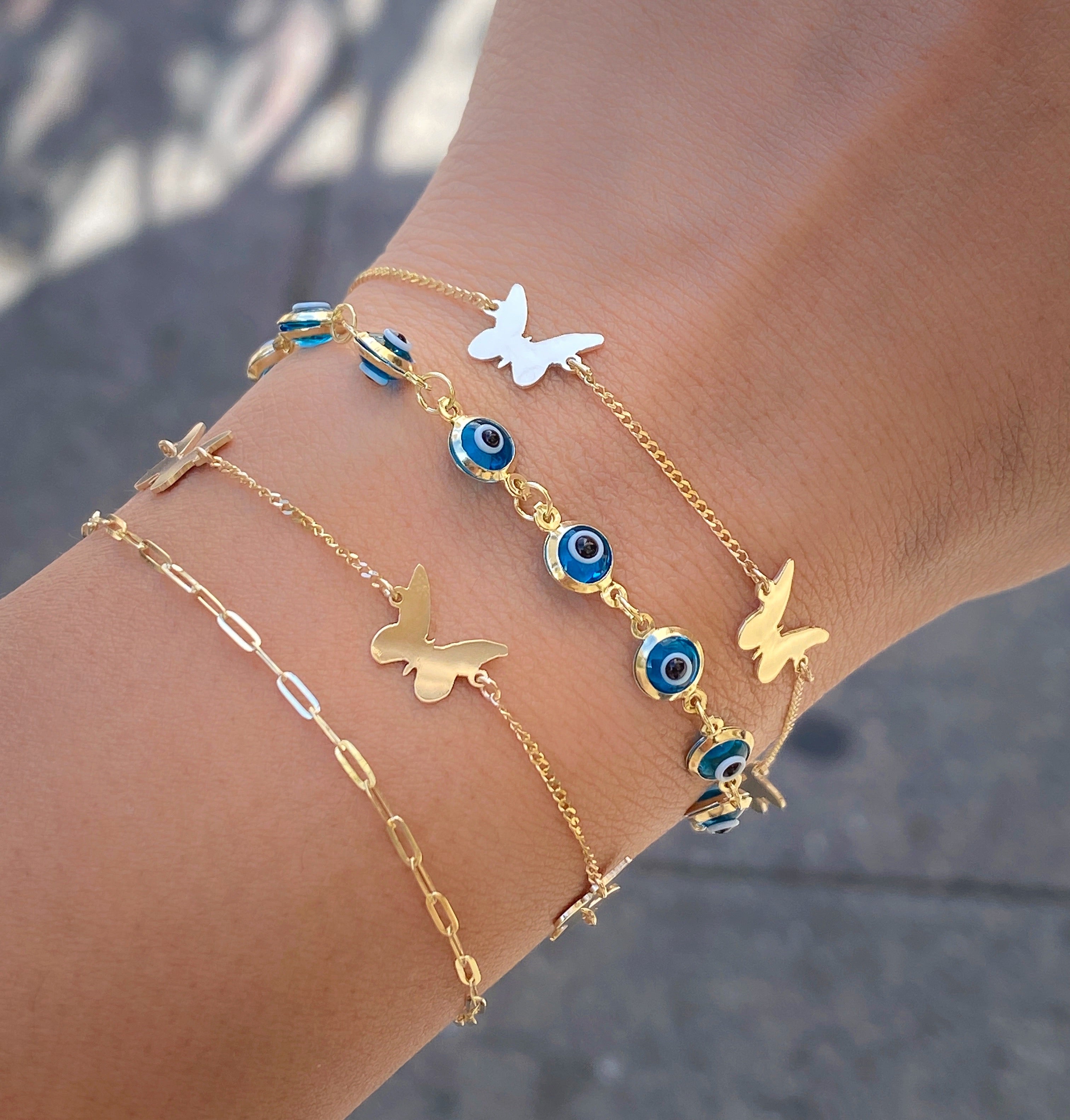 14K YELLOW GOLD TRIPLE FLOATING BUTTERFLY BRACELET