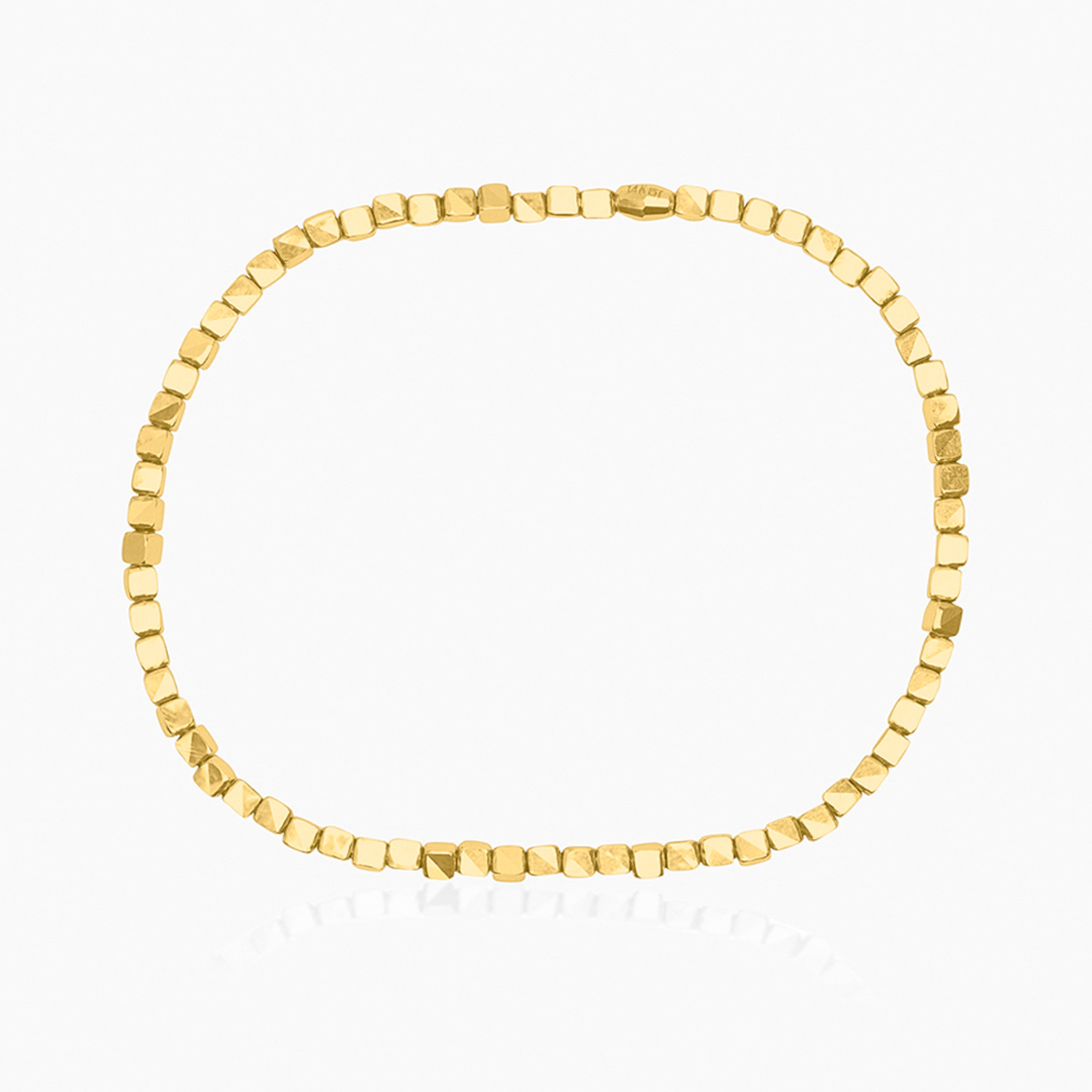 14K YELLOW GOLD TUMBLED SQUARE BEADS BRACELET