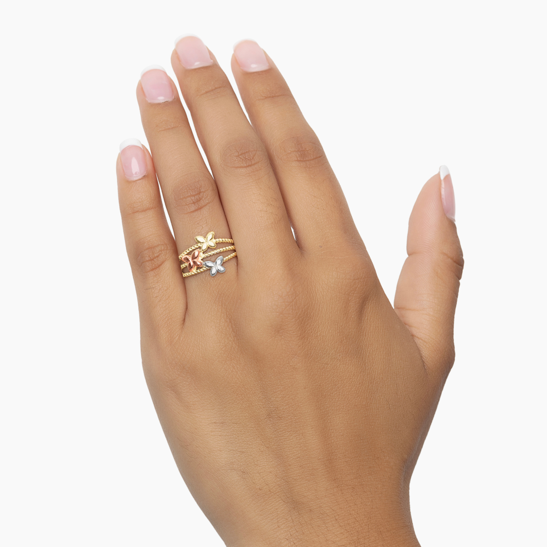 14K YELLOW GOLD TRI BELLE BUTTERFLY RING