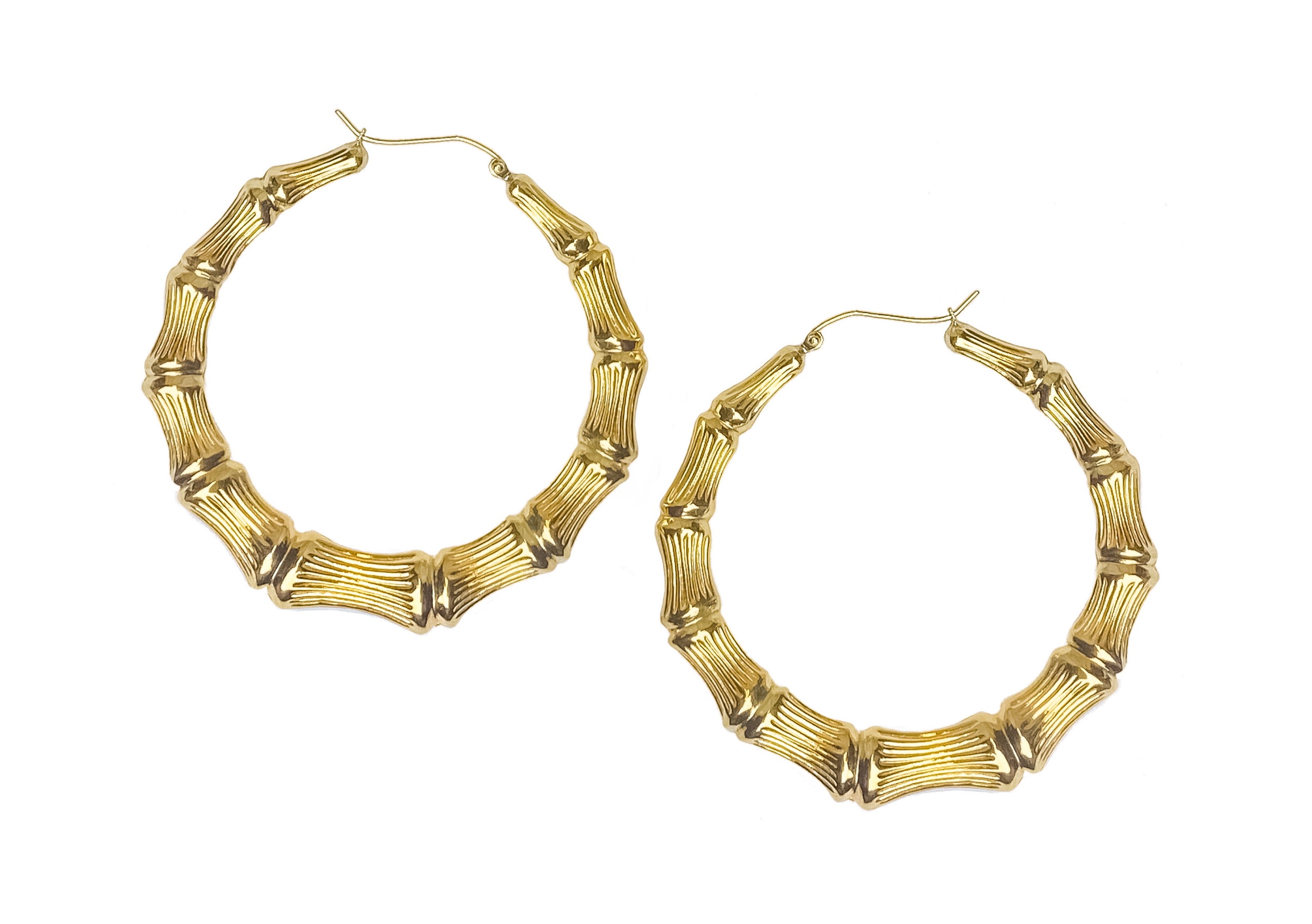 10K YELLOW GOLD BAMBOO HOOPS -MEDIUM