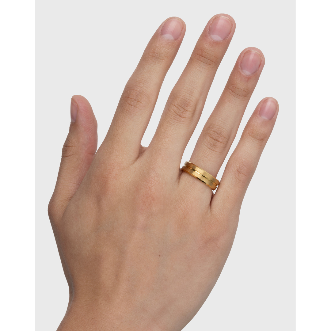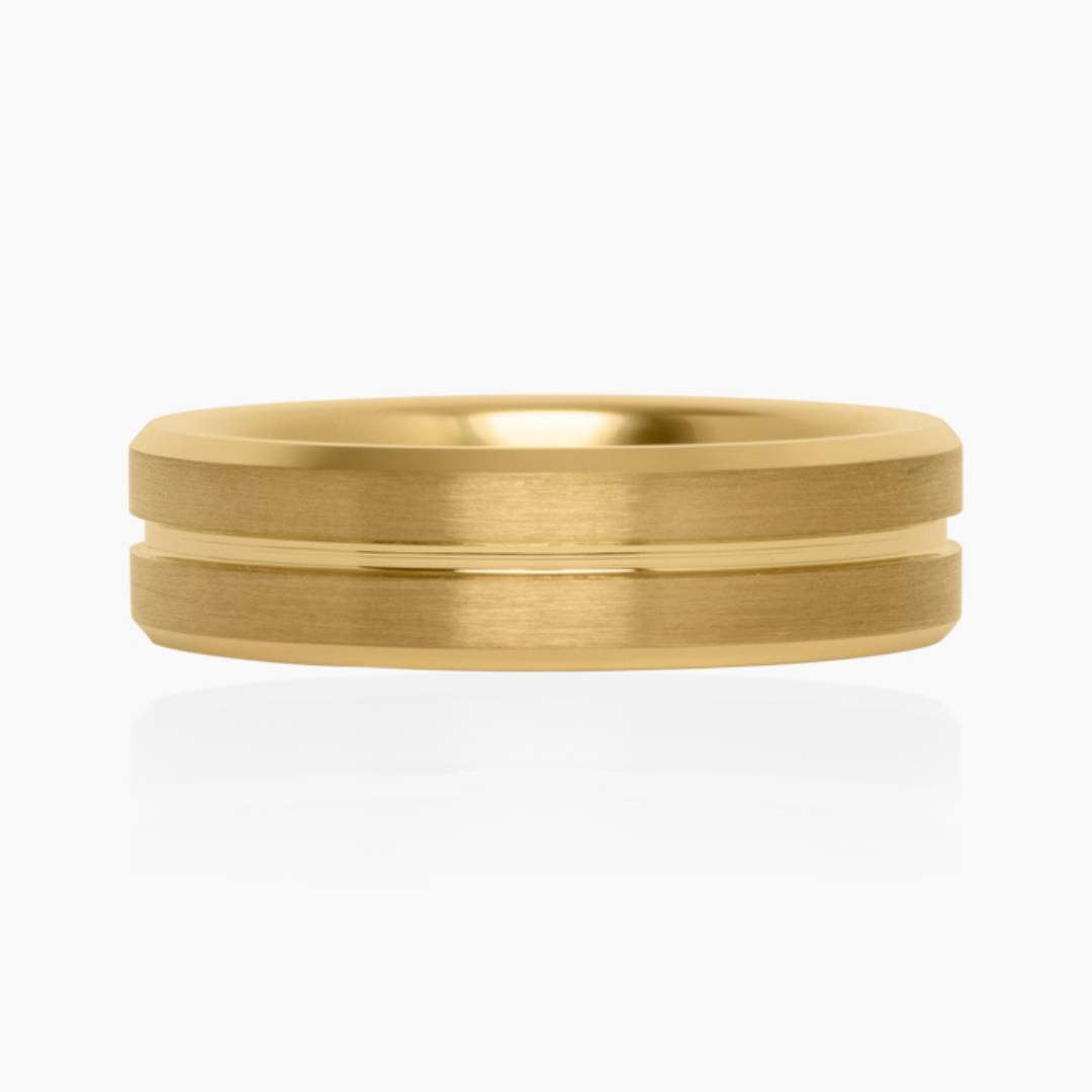 TUNGSTEN GOLD BRUSHED CENTER LINE BEVEL EDGE RING -6MM