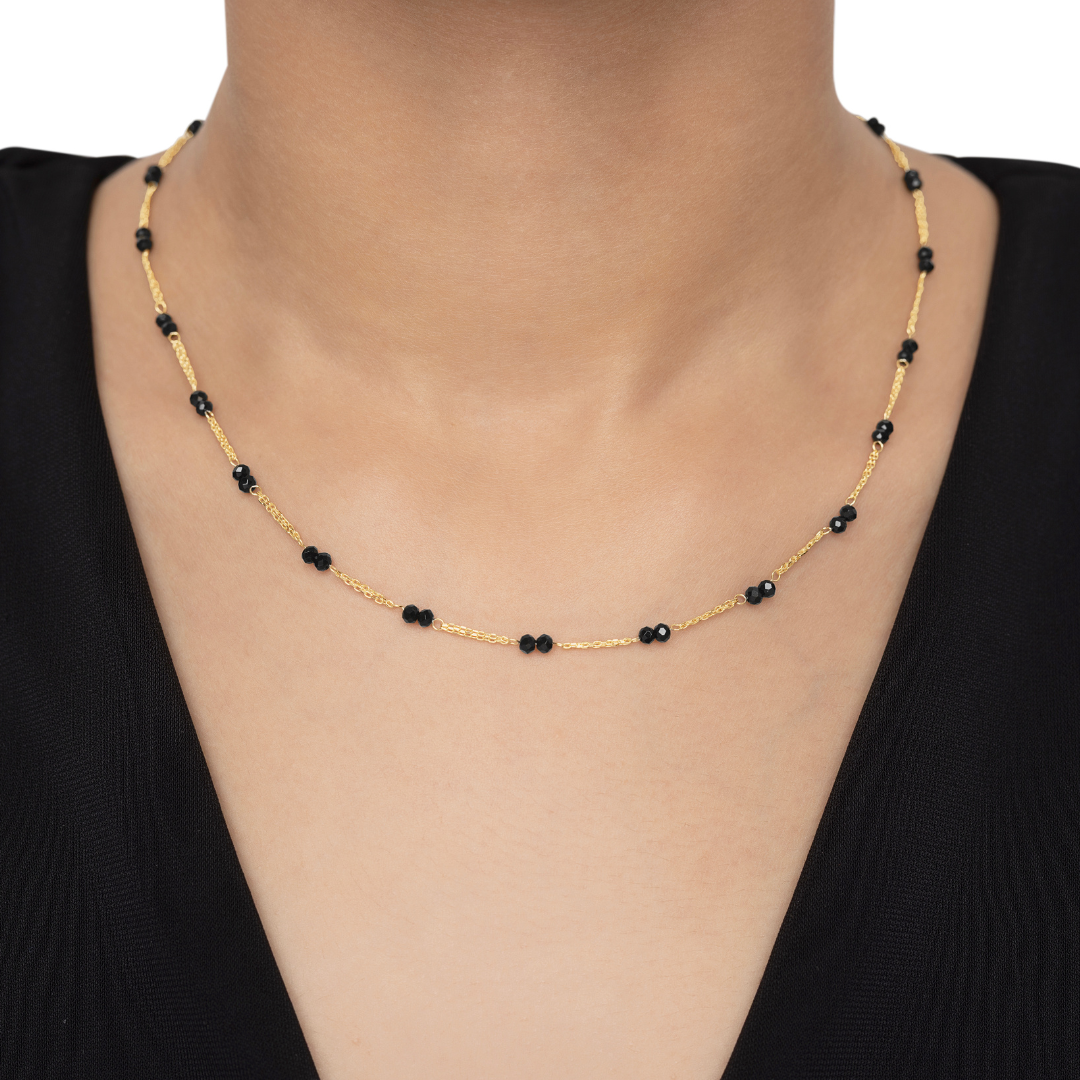 14K YELLOW GOLD BLACK BEADED DOUBLED LINKS CHAIN