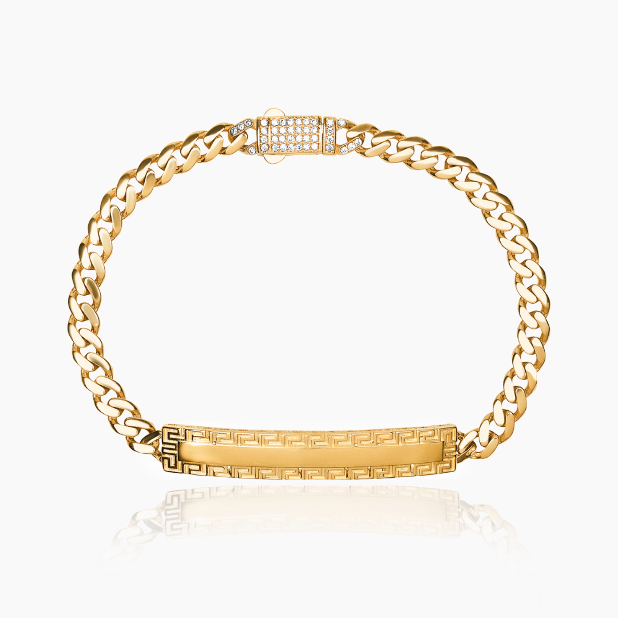 14K YELLOW GOLD GRECIAN FRAME MONACO ID BRACELET