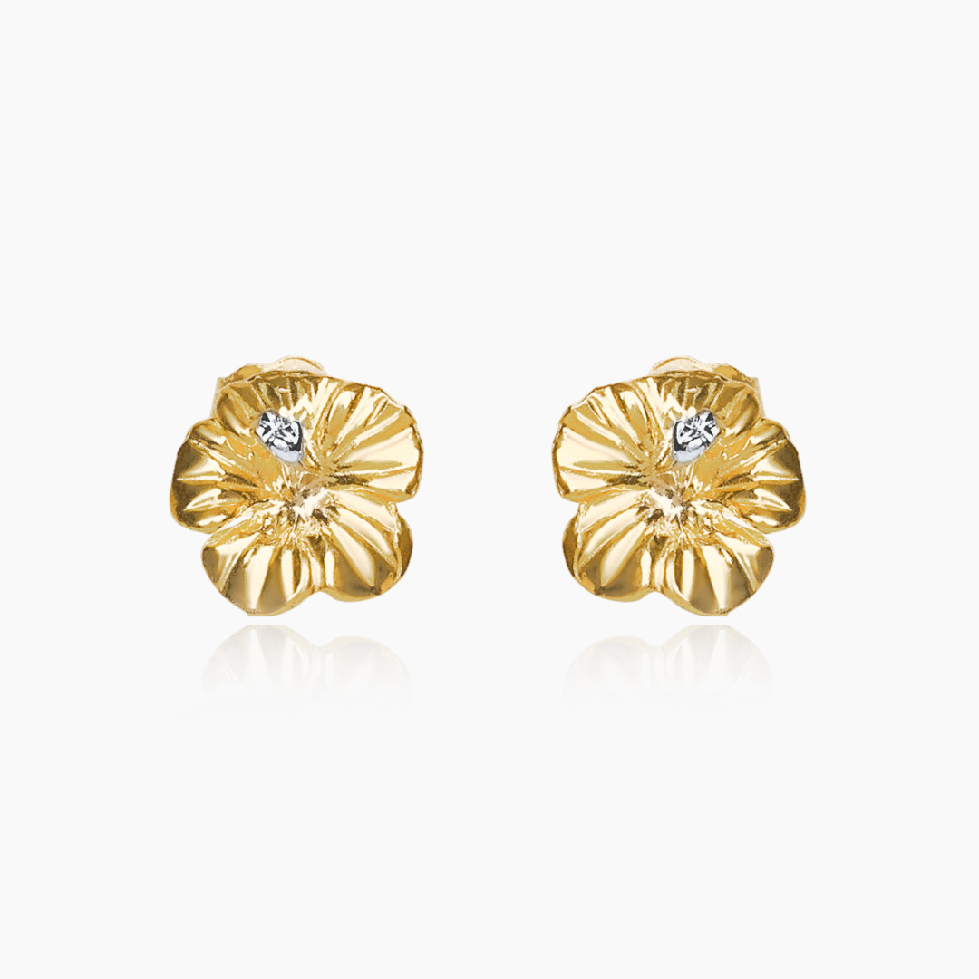 10K YELLOW GOLD HIBISCUS FLOWER STUD EARRINGS