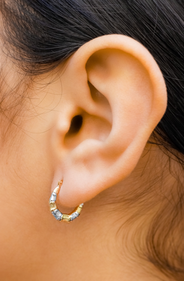 14K TWO TONED GOLD MINI BAMBOO HOOPS