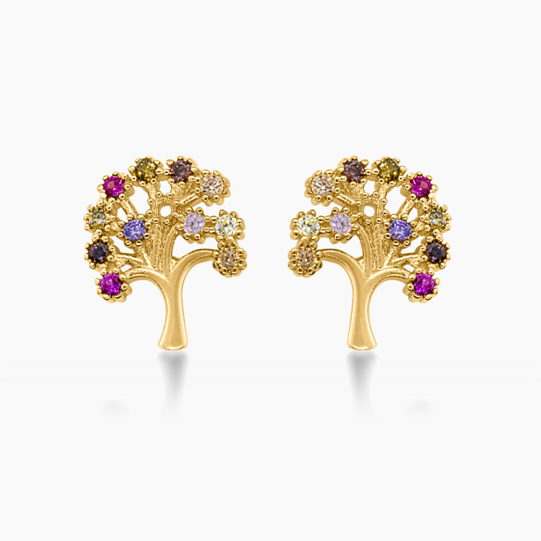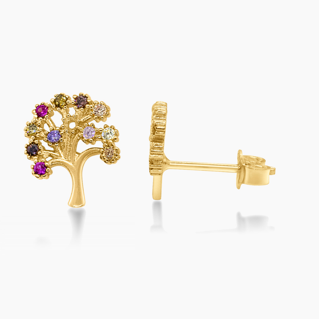 14K YELLOW GOLD COLORBURST TREE STUDS