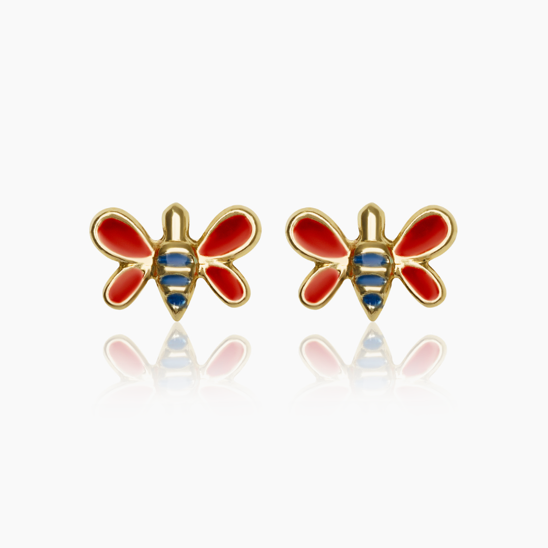 14K YELLOW GOLD MULTI COLOR BUTTERFLY STUDS -RED/BLUE