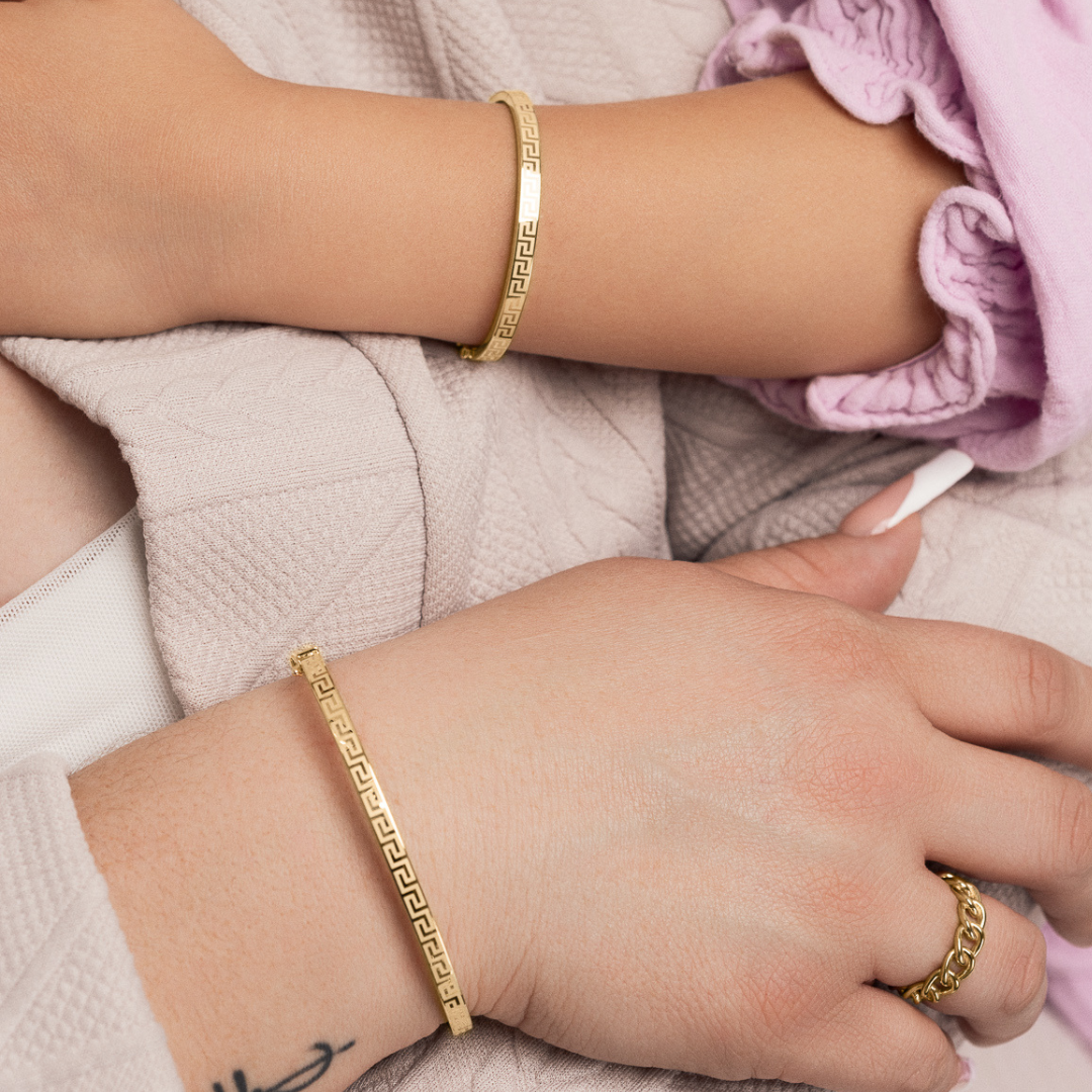 14K YELLOW GOLD GRECIAN PRINT BANGLE BRACELET -CHILDREN
