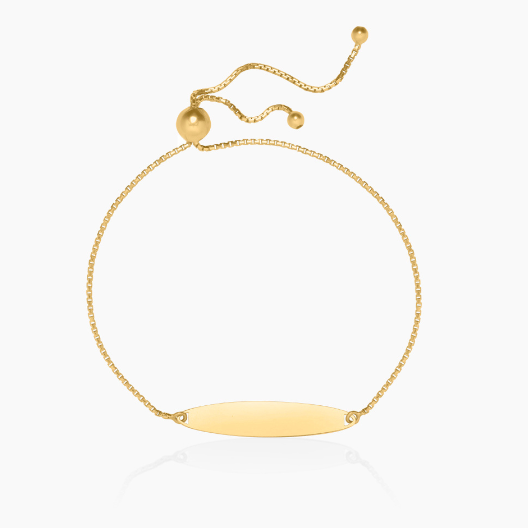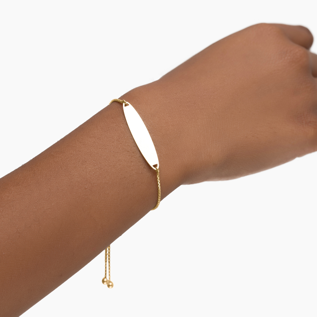 14K YELLOW GOLD OVAL PLATE BOX CHAIN CHILDREN'S ID BRACELET