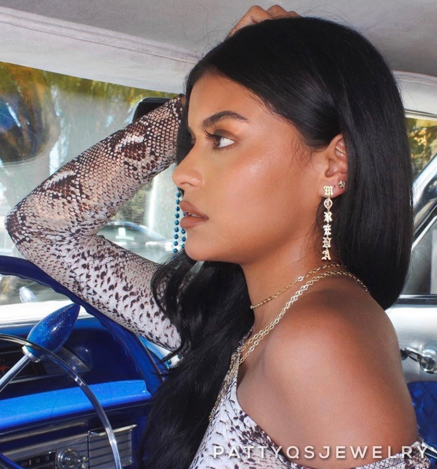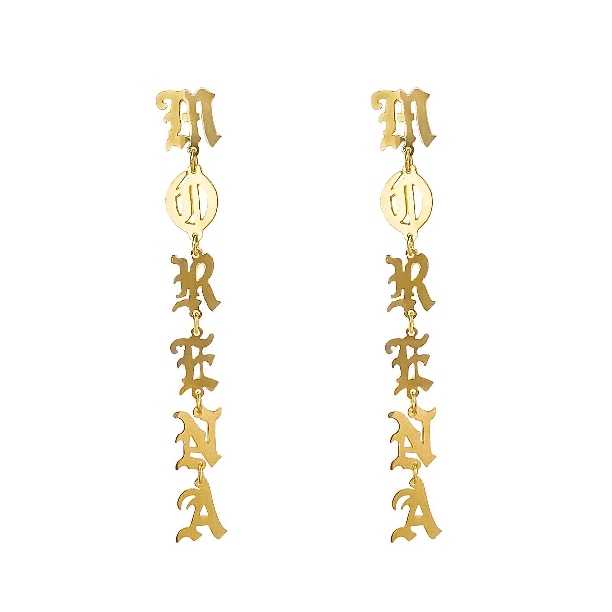 - 14K OLD ENGLISH NAME DROP EARRINGS