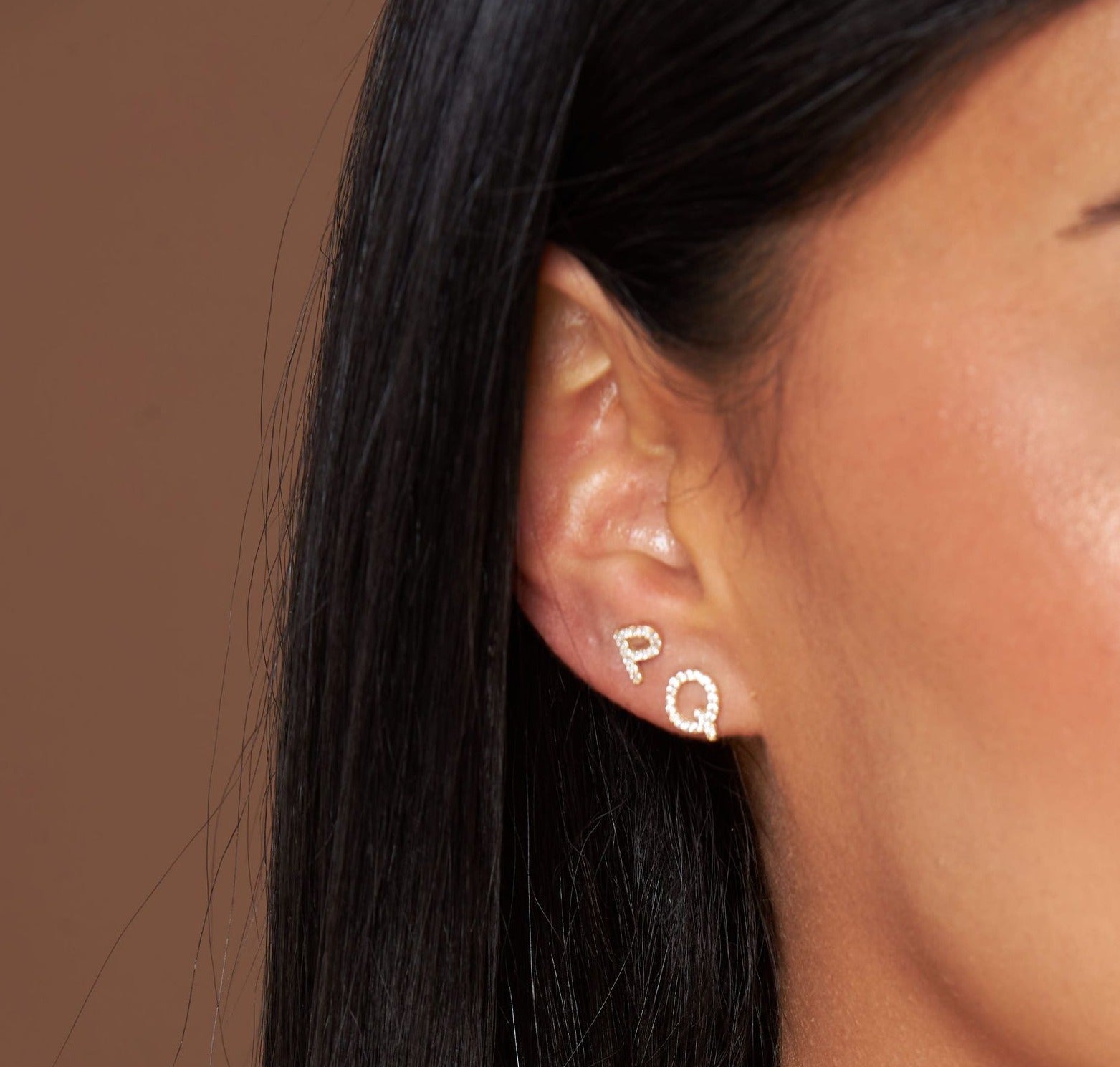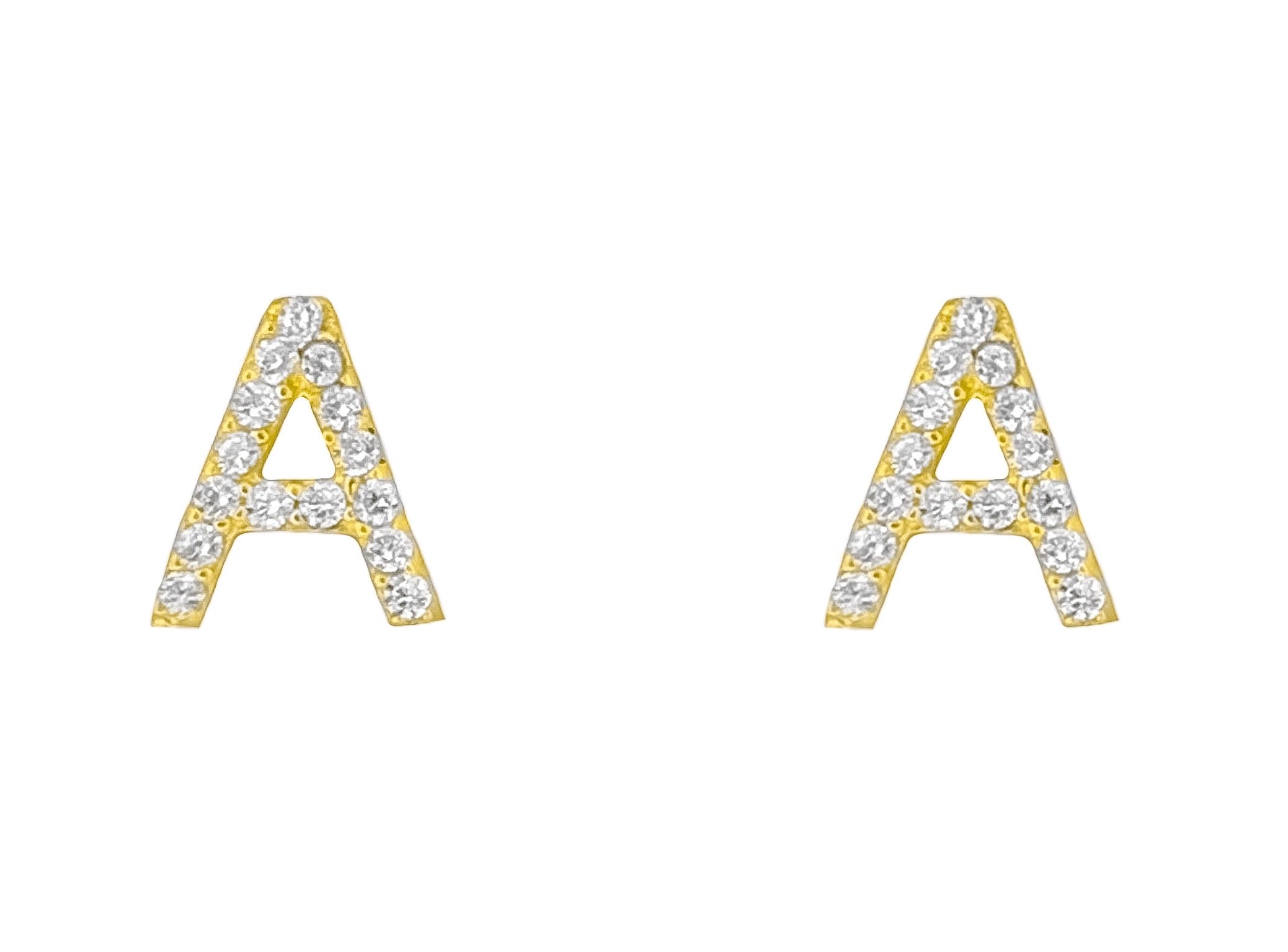 14K YELLOW GOLD PAVE INITIAL EARRINGS -SLIM