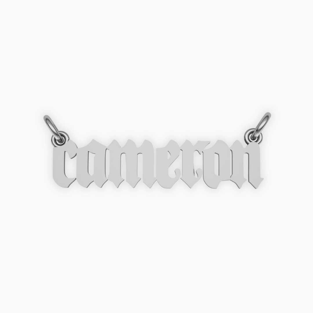 14K WHITE GOLD OLD ENGLISH MINI NAME PLATE