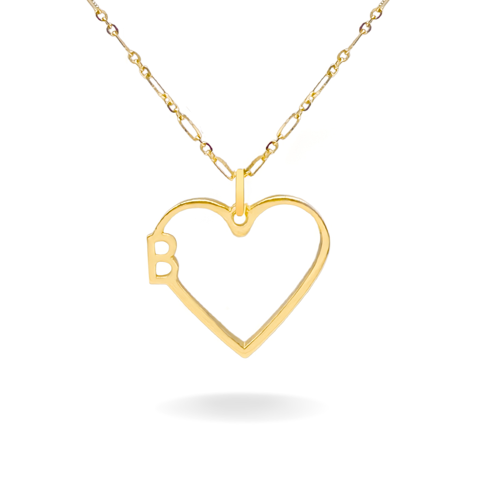 14K YELLOW GOLD SERIF INITIAL HEART PENDANT NECKLACE