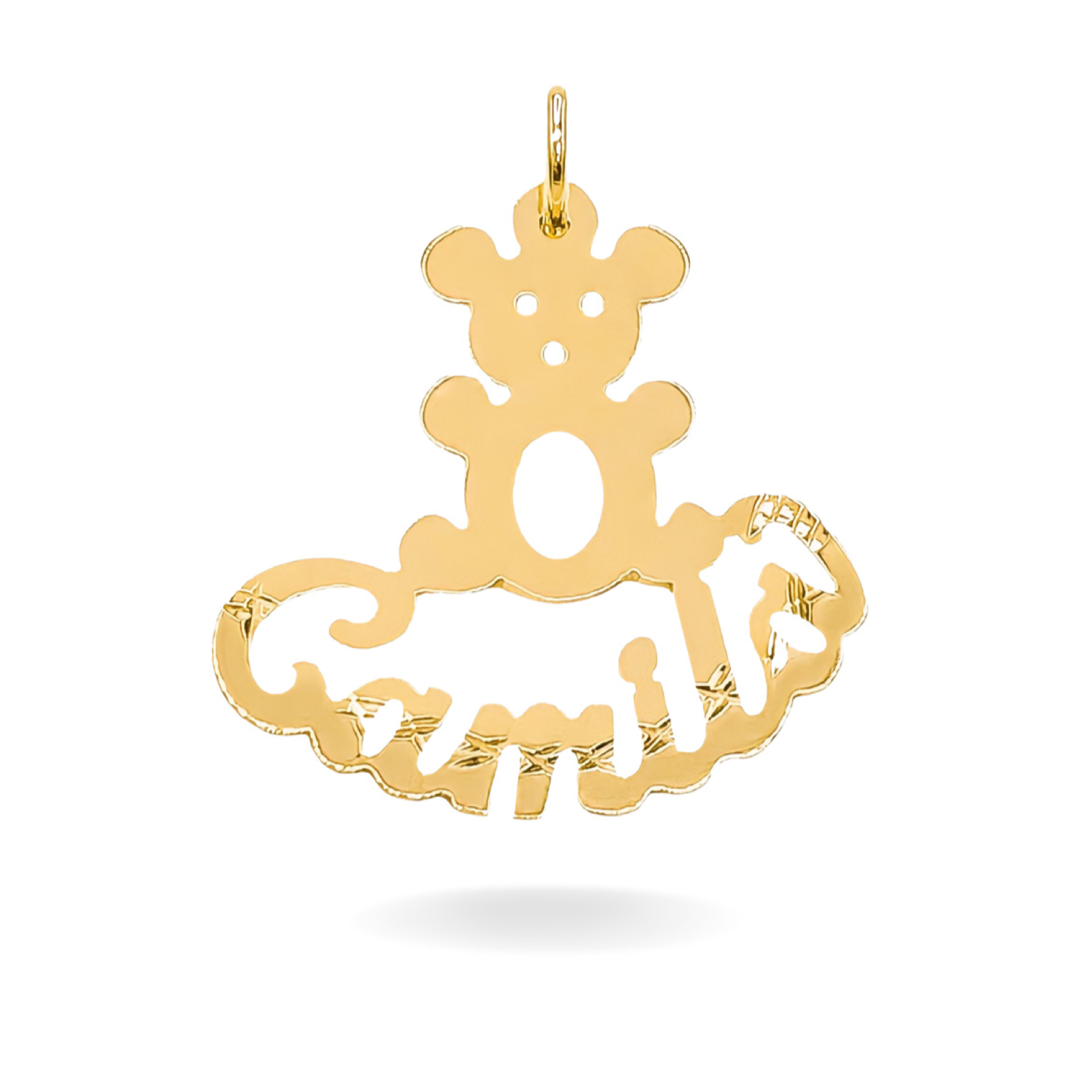 14K YELLOW GOLD TEDDY BEAR SCRIPT NAME PLATE
