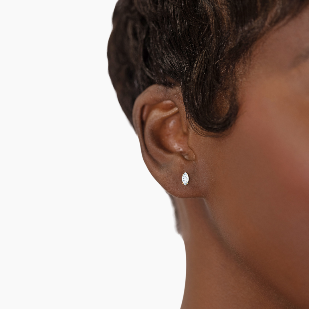 14K YELLOW GOLD FOUR PRONG MARQUISE LAB GROWN DIAMOND STUDS