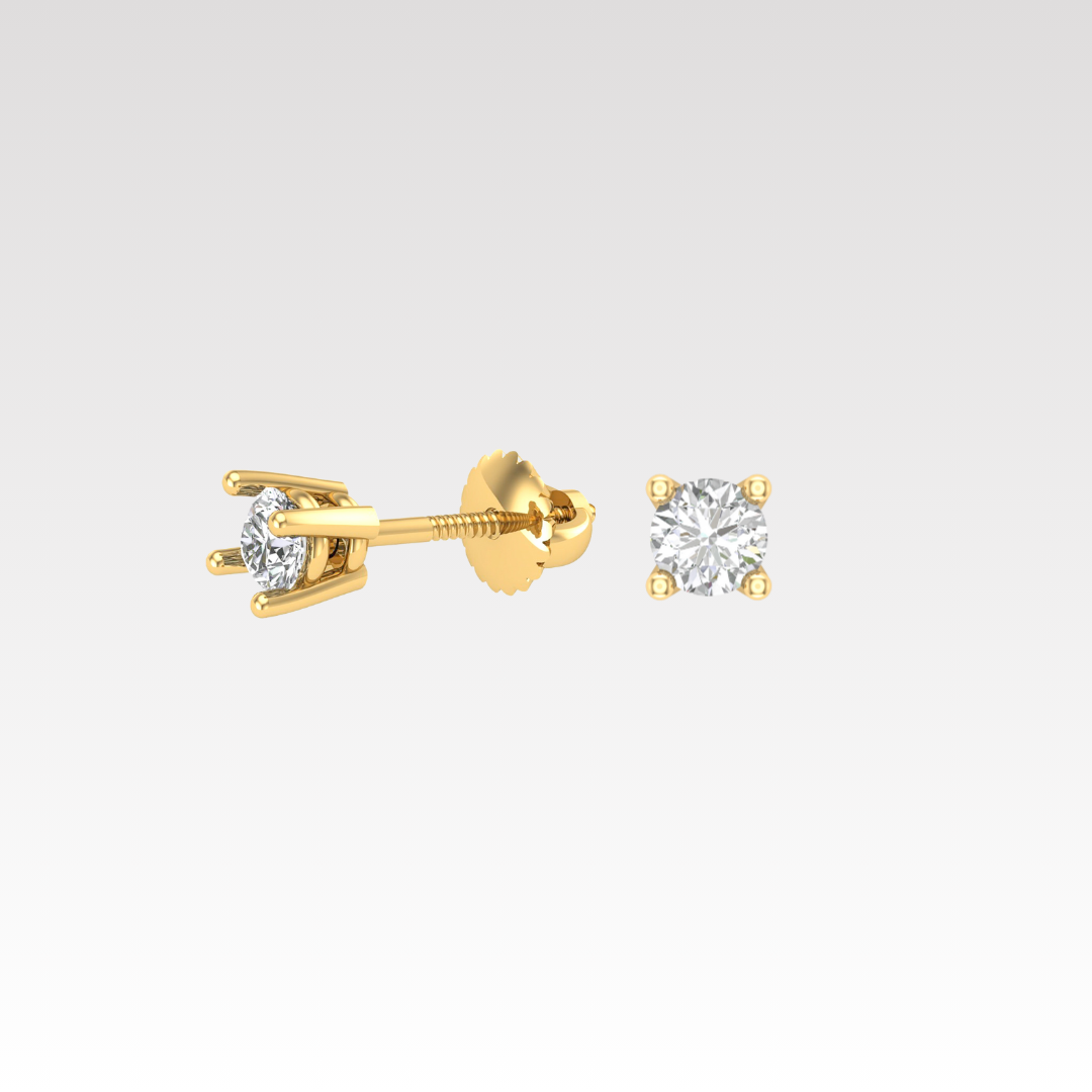 14K YELLOW GOLD FOUR PRONG ROUND DIAMOND STUDS -4MM