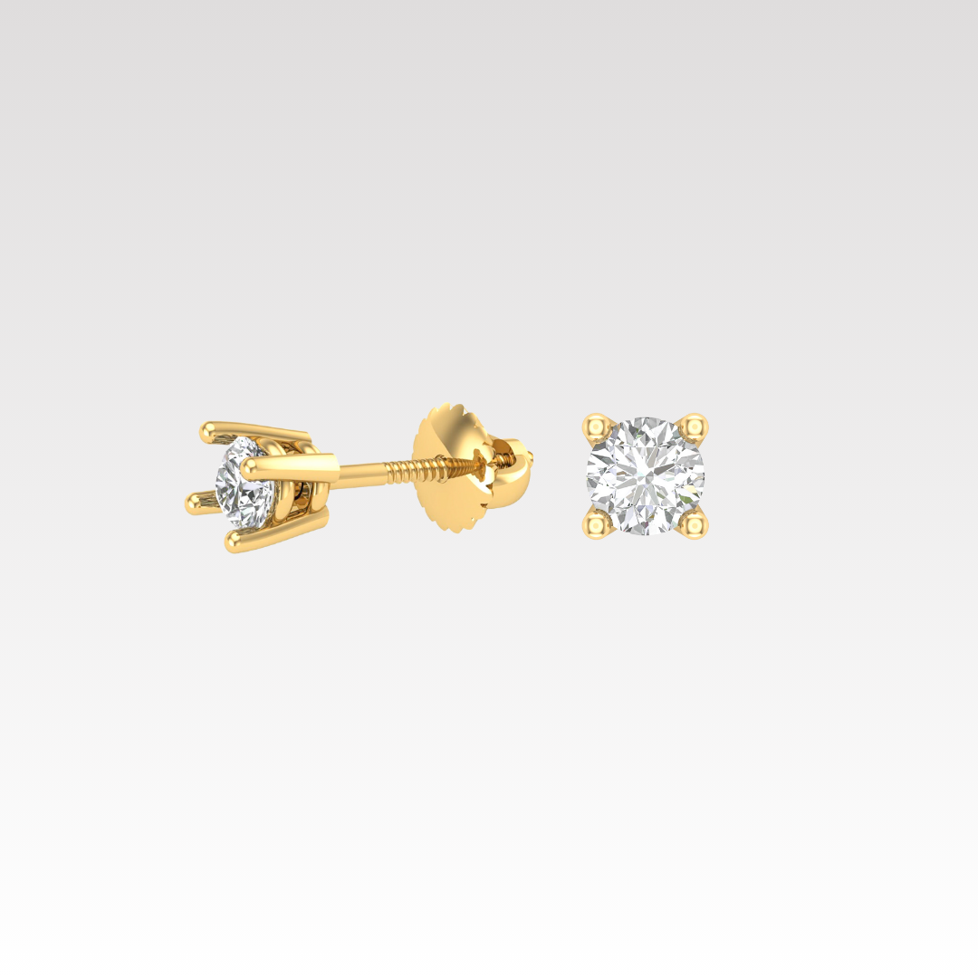 14K YELLOW GOLD FOUR PRONG ROUND DIAMOND STUDS -5MM