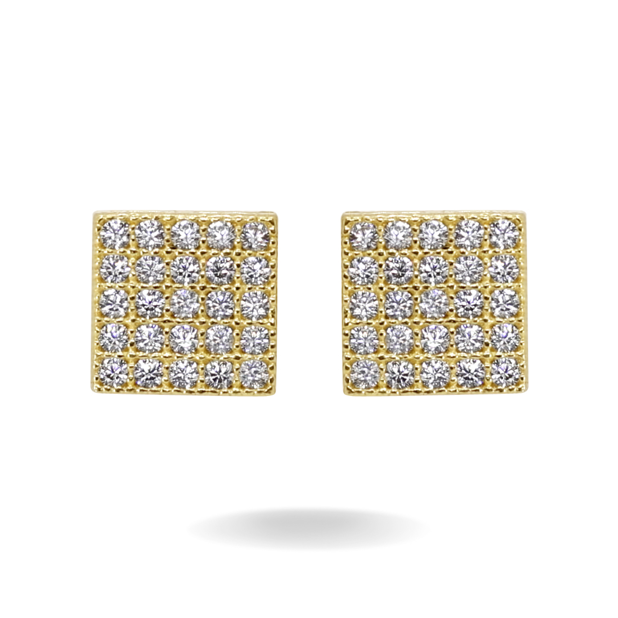 10K YELLOW GOLD PAVE SQUARE STUD EARRINGS -7.5MM