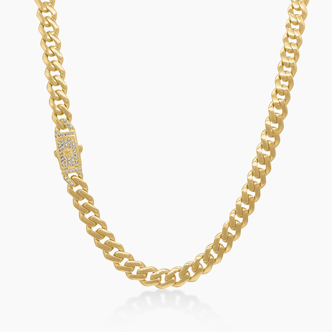 14K YELLOW GOLD MONACO CHAIN WITH ICE LOCK -7MM