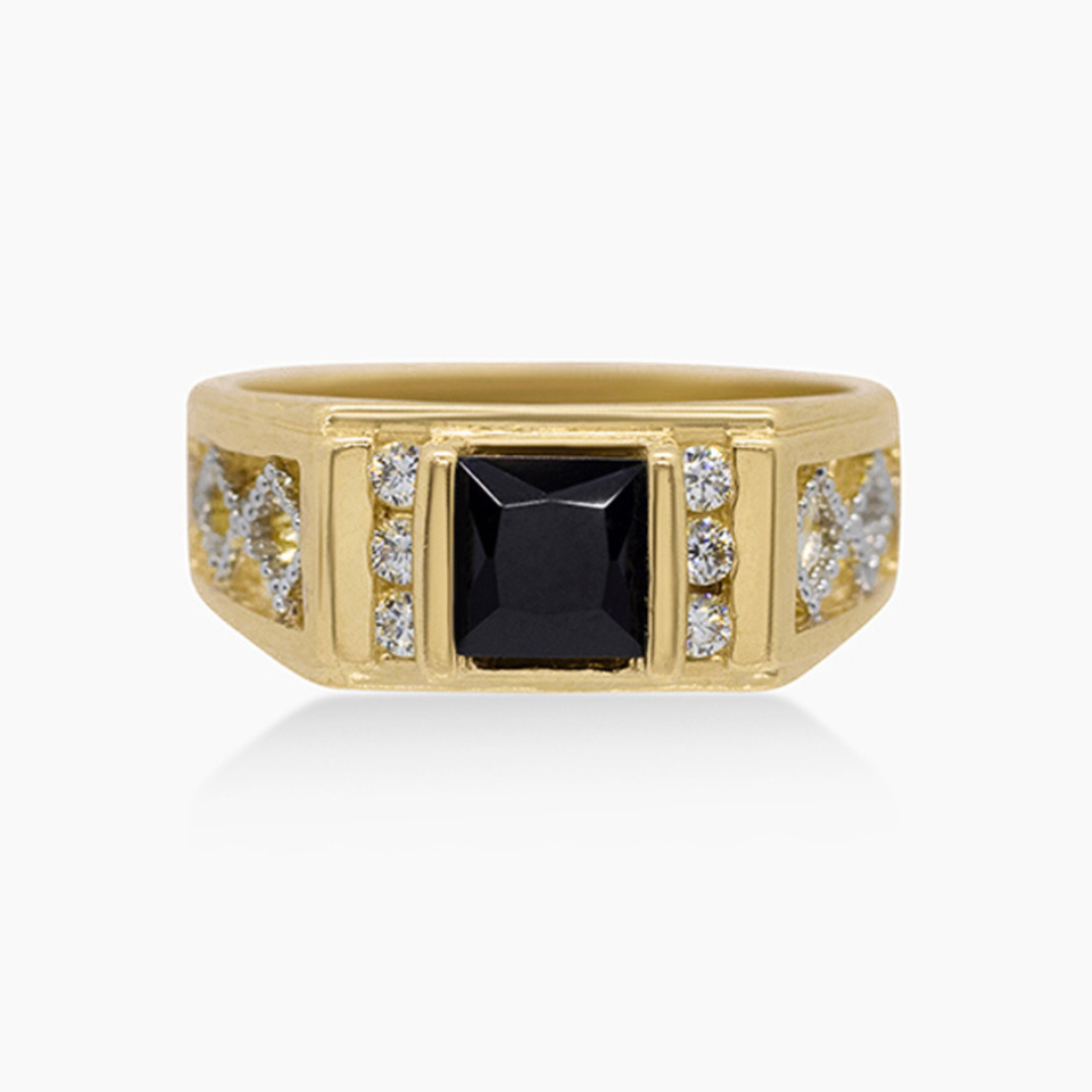 - Material: 14k Yellow Gold, Cubic zirconia, Onyx