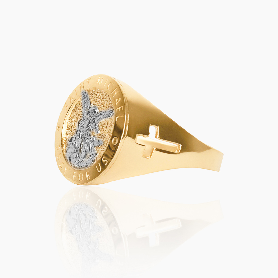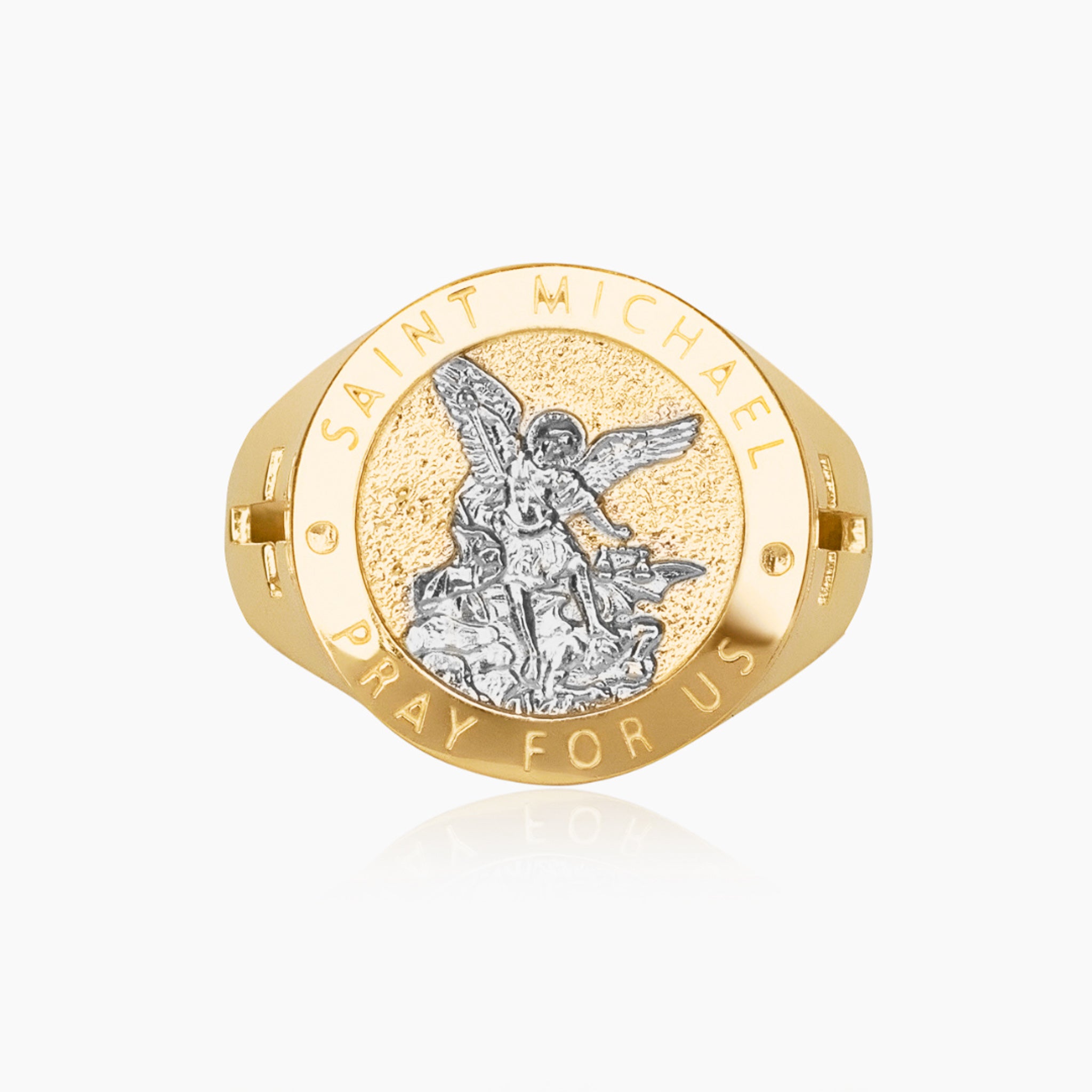 14K YELLOW GOLD SAINT MICHAEL SIGNET RING